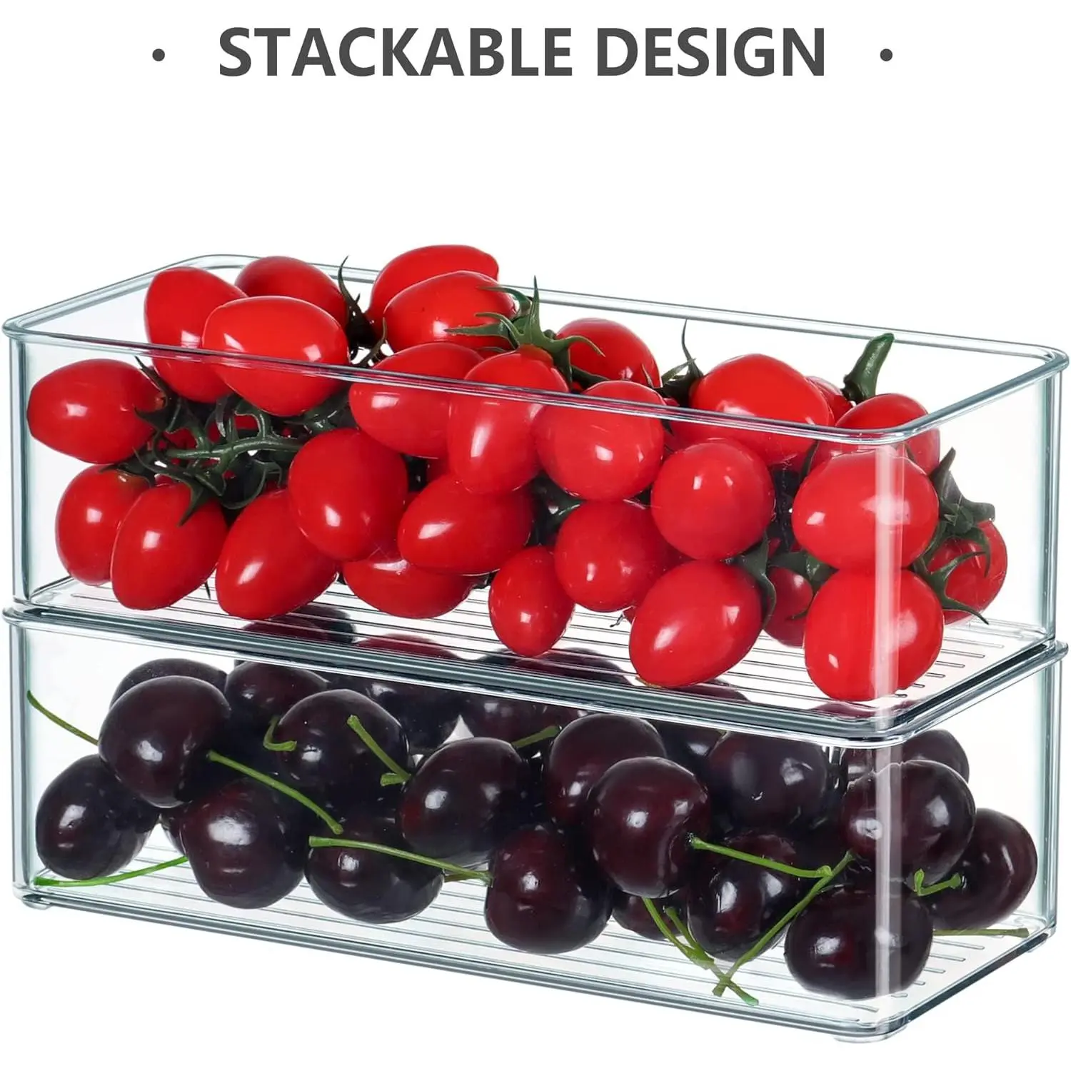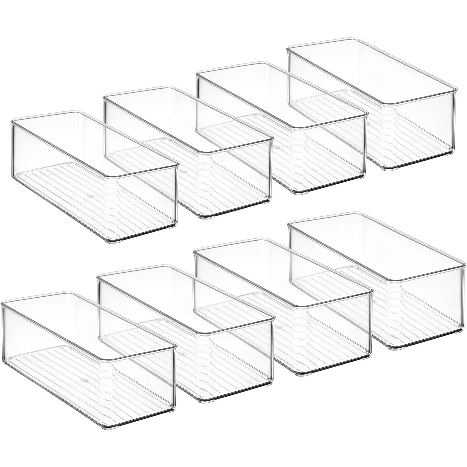 This set of storage bins contains 2 sizes (4S + 4M) to meet various scenarios, The sizes are designed for little stuffs in bathroom, drawer, fridge or pantry.