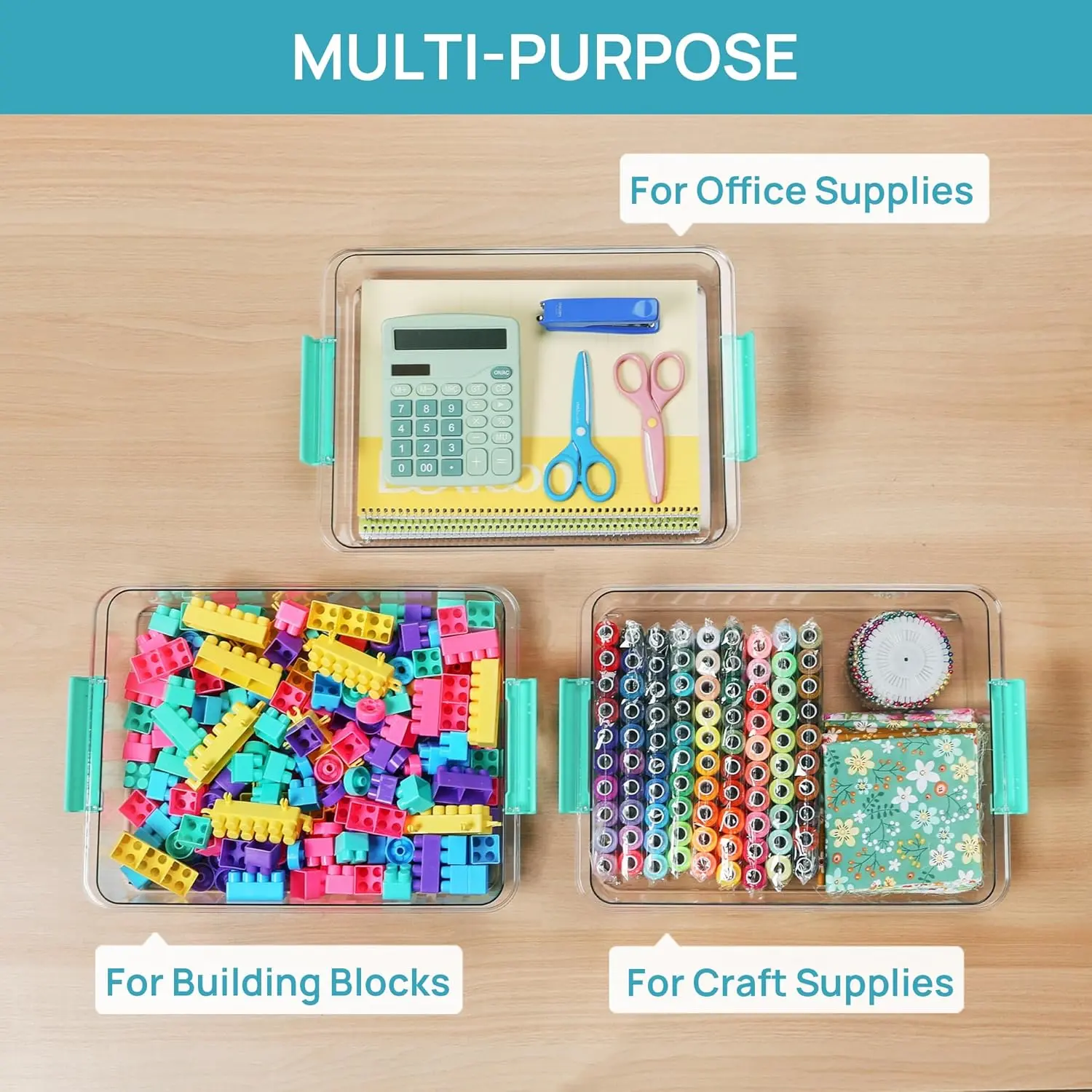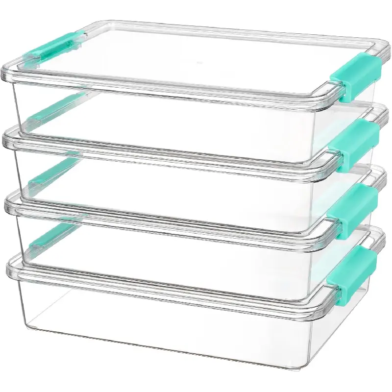 6 Qt Plastic Storage Bins with Lids, Clear Sensory Bins, Arts Crafts Organizers and Storage, Stackable Containers for Home Office and School Supplies, 4 Pack