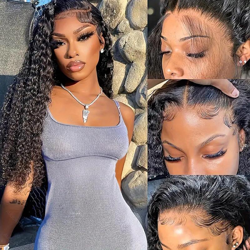 5. [New In] Bling Hair 13x6 13x4 Glueless Wigs Deep Wave With Drawstring Pre Cut 13x6 13x4 Transparent Lace Frontal Human Hair Wig For Women 180% Density Beginner Friendly