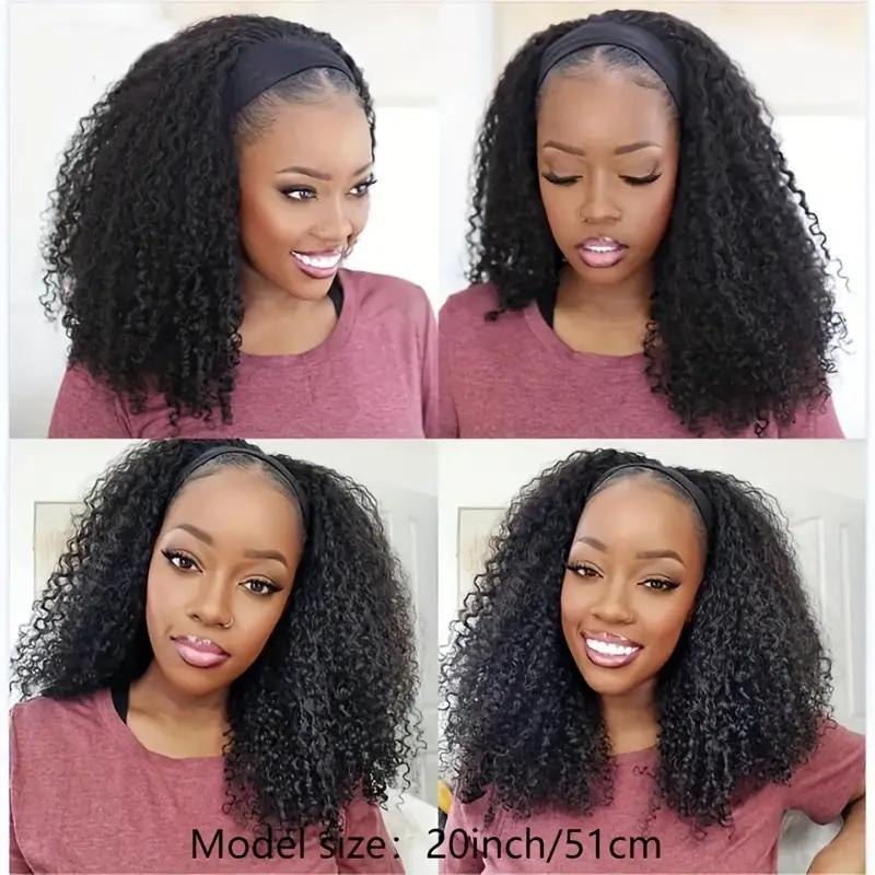 Bling Hair Headband Wig Kinky Curly Human Hair Wigs Brazilian Remy HUman Hair Wigs Curly 12-24 Inch Non Lace For Women 180% Density TikTokShopBlackFriday