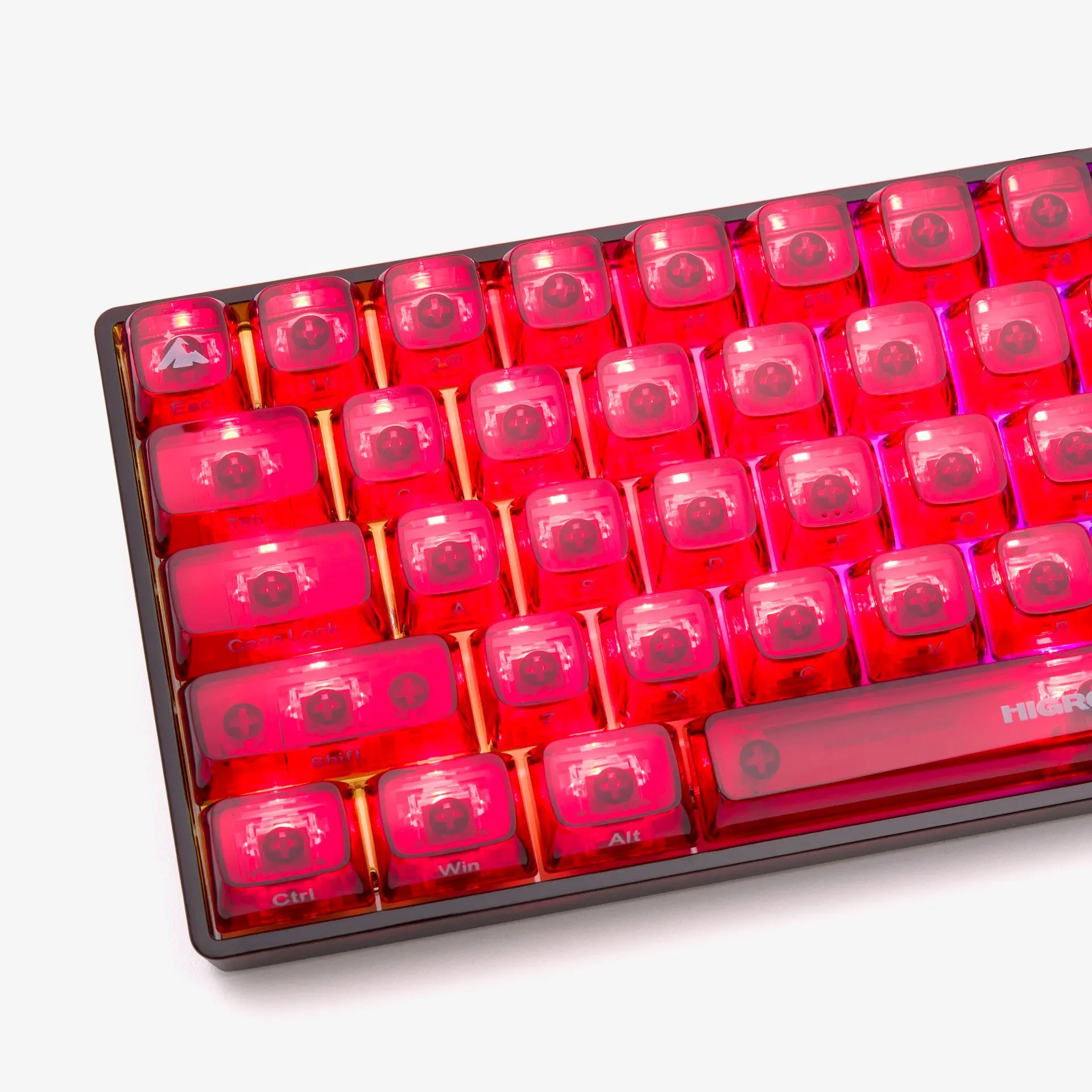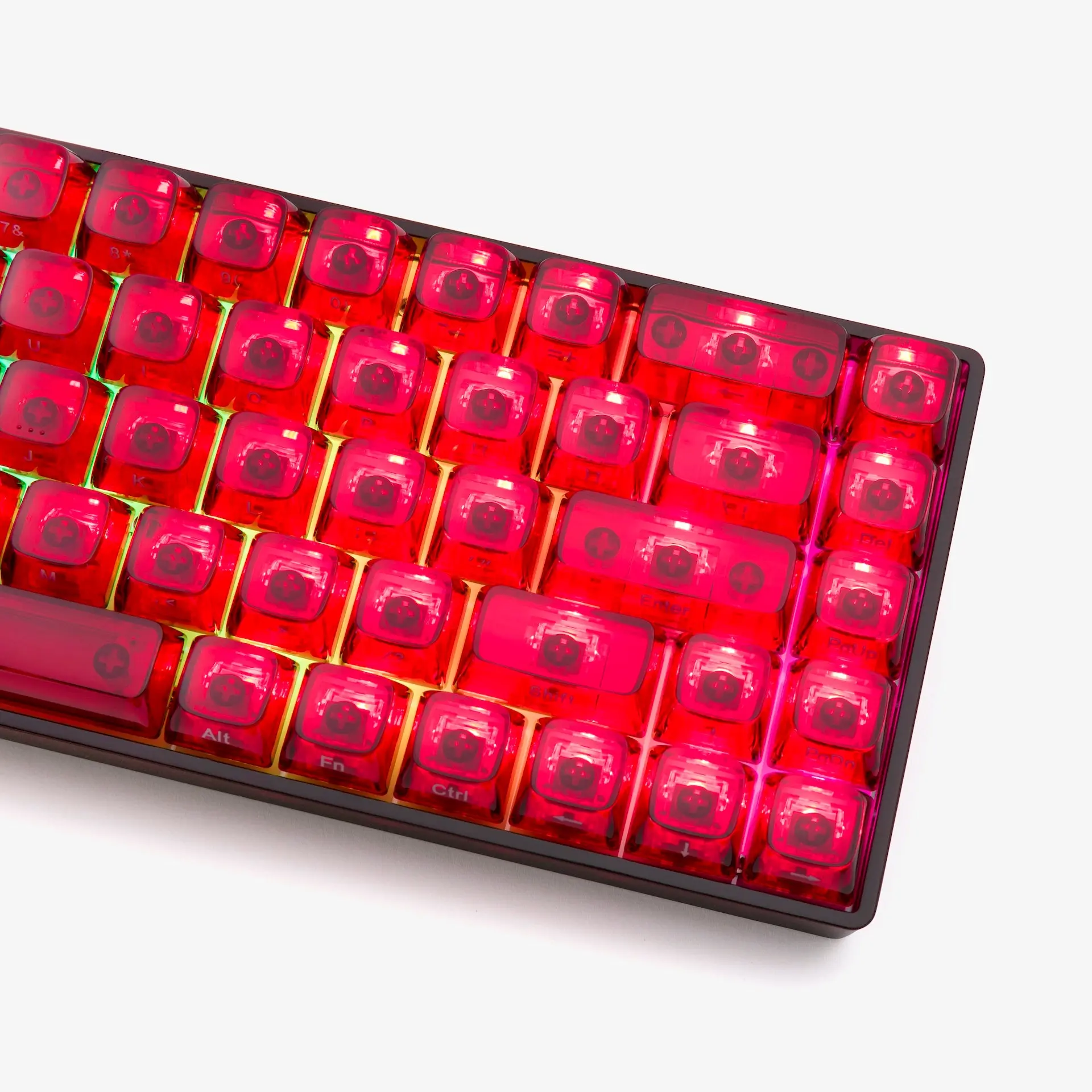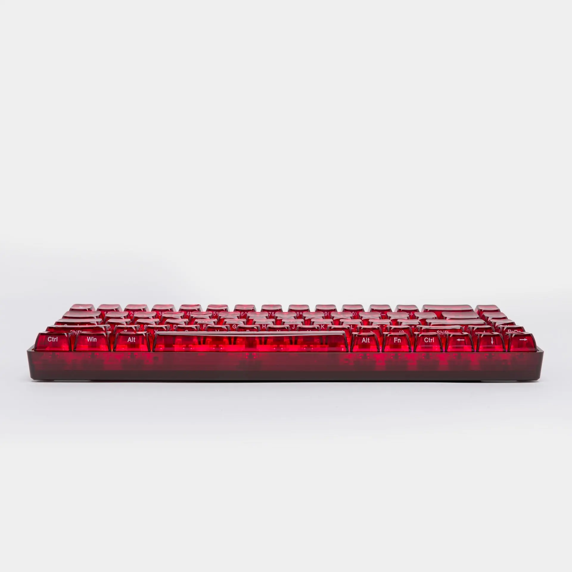 Introducing our most transparent 65% keyboard. This exceptional piece showcases an all-polycarbonate construction throughout not only the keycaps, but also the frame and plate for a seamless, uniform aesthetic.