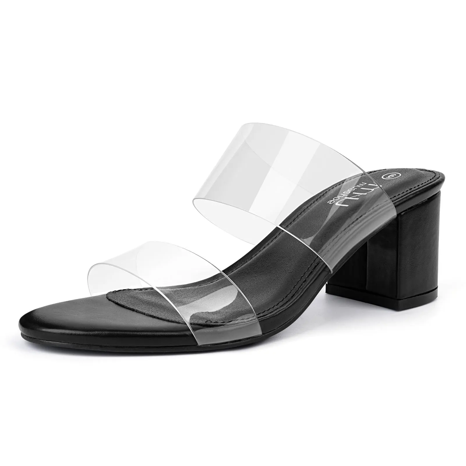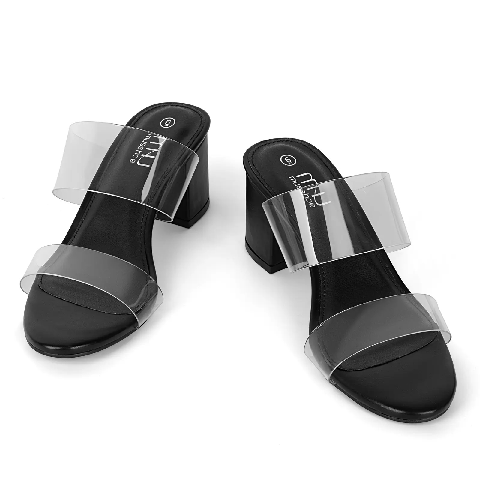 MUSSHOE Clear Strap Heels Women’s Open Toe Chunky Low Block Pumps
