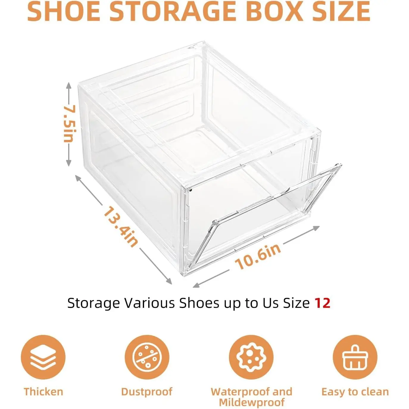 Transparent display design: Display and organize your favorite shoes with clear viewing shoebox storage; If you want to keep your shoes safe and clean, this shoebox is for you!