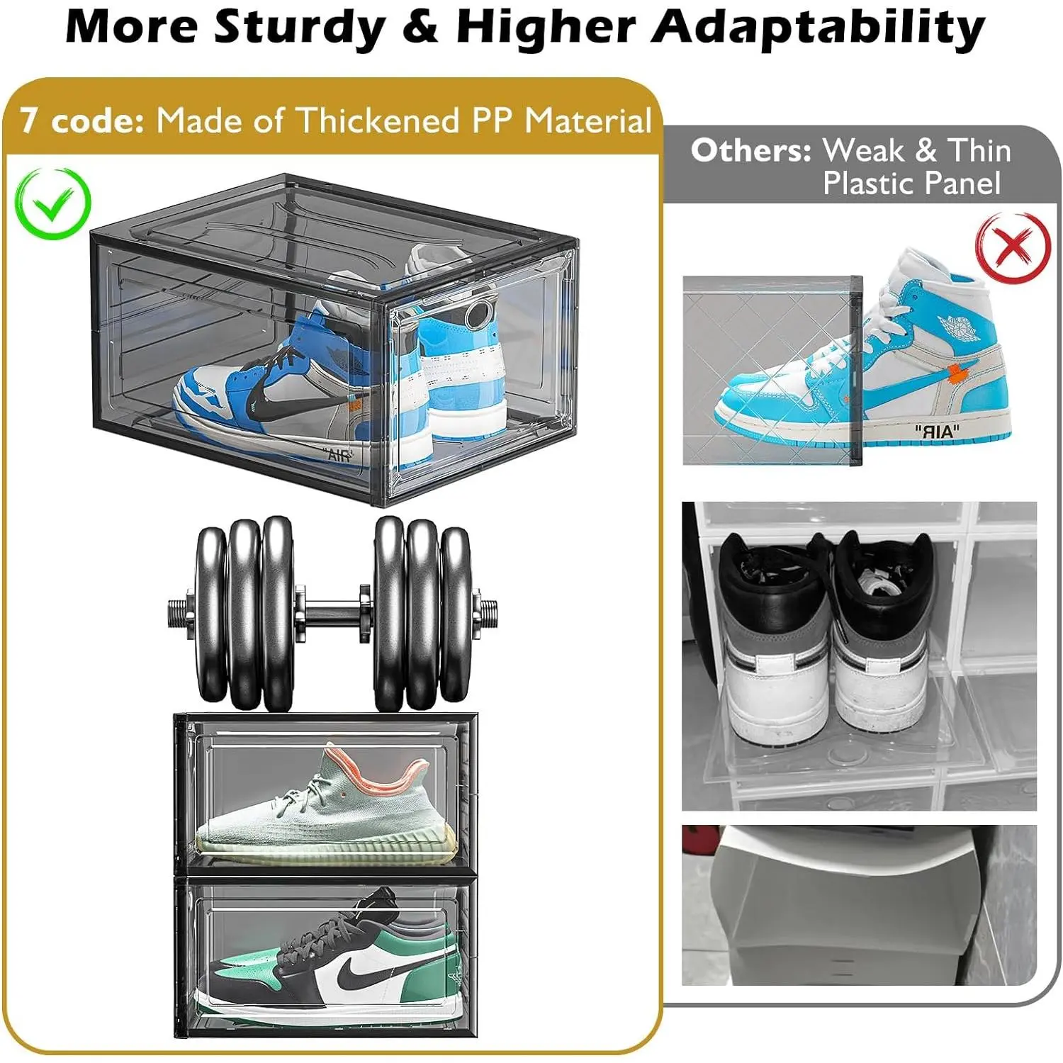 ✔A Must-Have for Every Shoe Enthusiast! - This shoebox is made with upgraded, sturdy, and thick plastic on all six sides. Say goodbye to weak plastic shoe storage boxes, our strong shoe storage box is superb value for money.