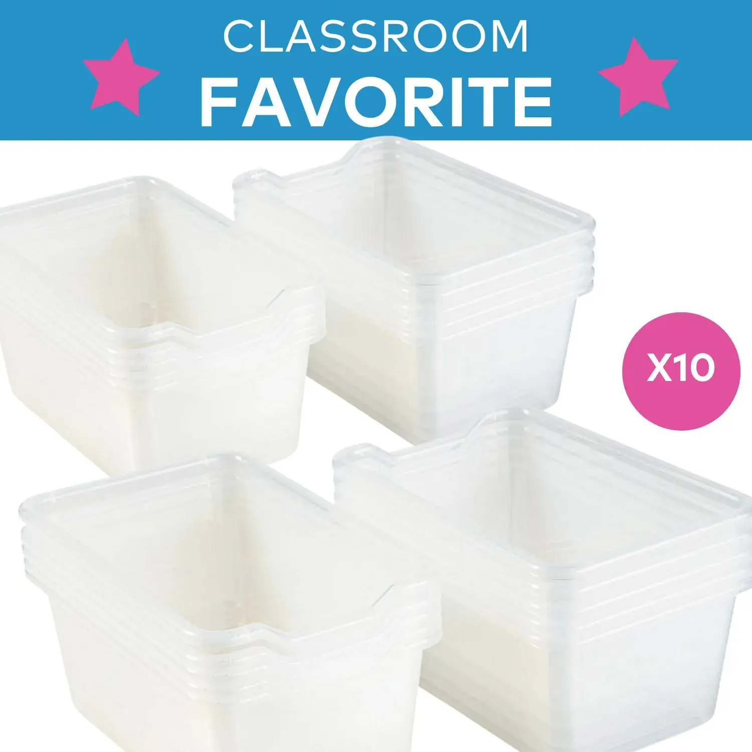 These sturdy front-scoop bins are easy to grip. Use these bins for home organization or in the classroom for optimal organization. Organize toys, craft supplies, or any other small supplies into these bins for less clutter and more peace of mind. Kids will have more fun helping pick up when they use these bins. These bins stack easily for storage when empty. br