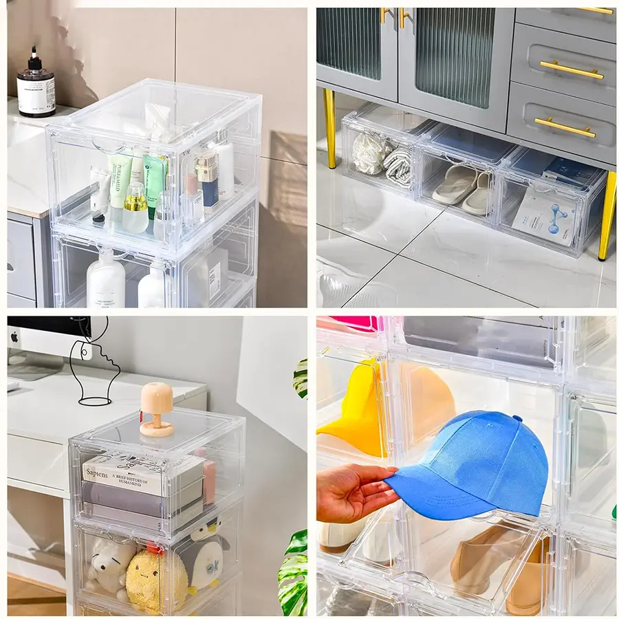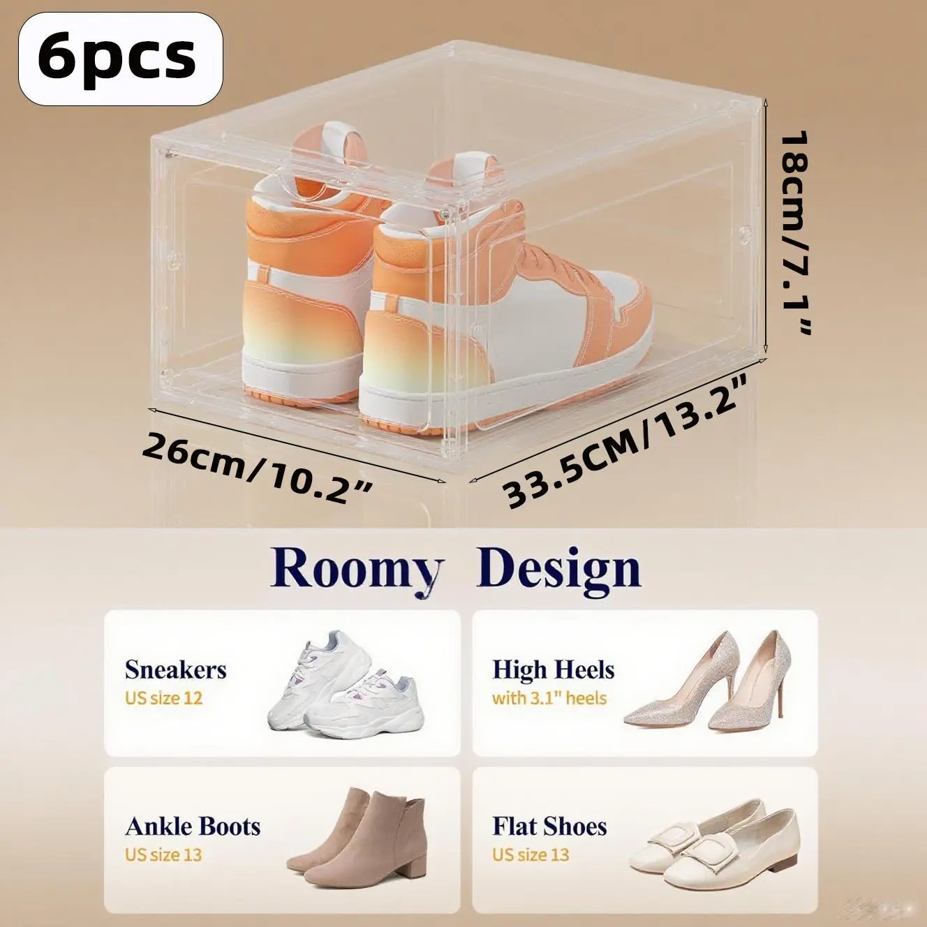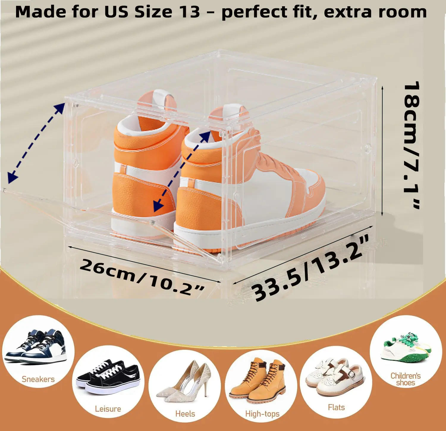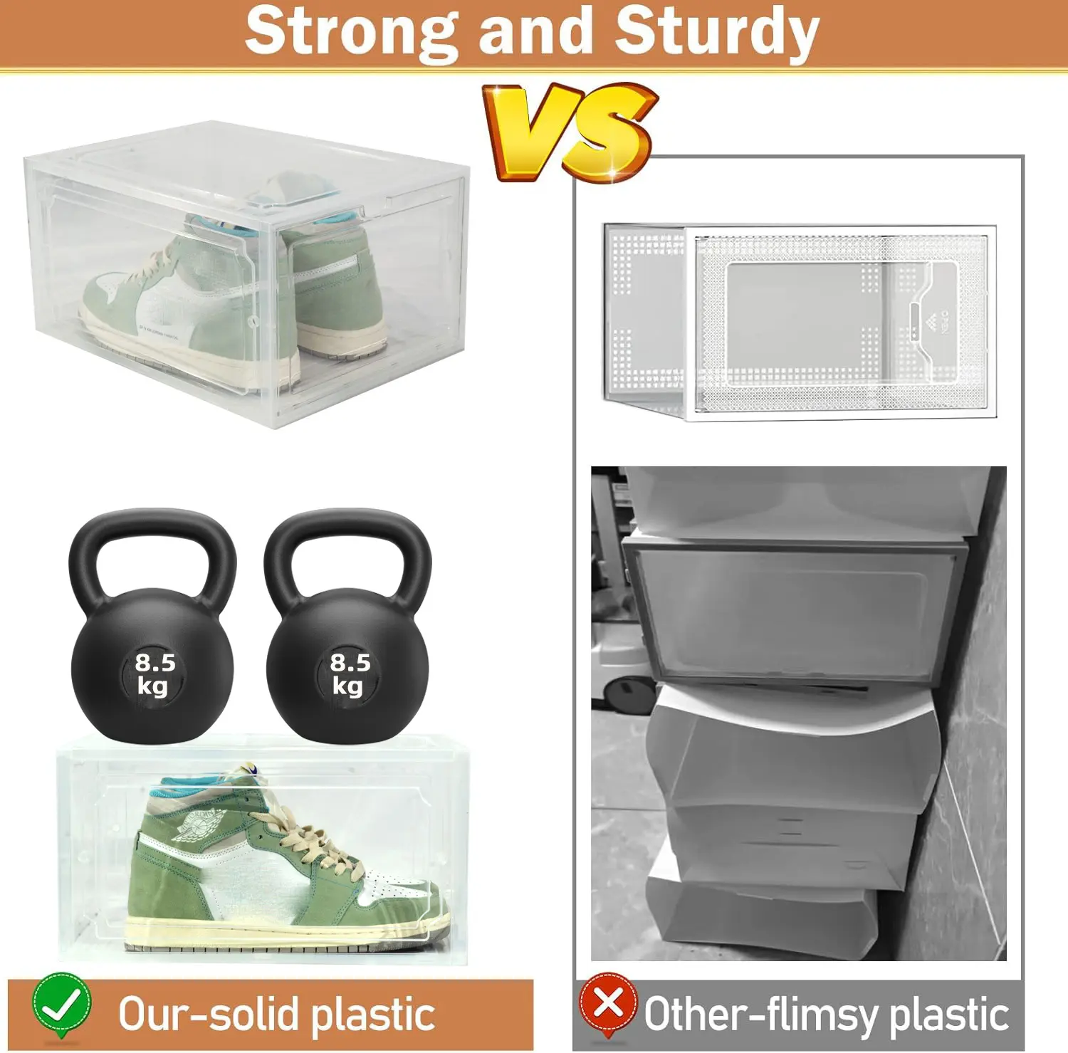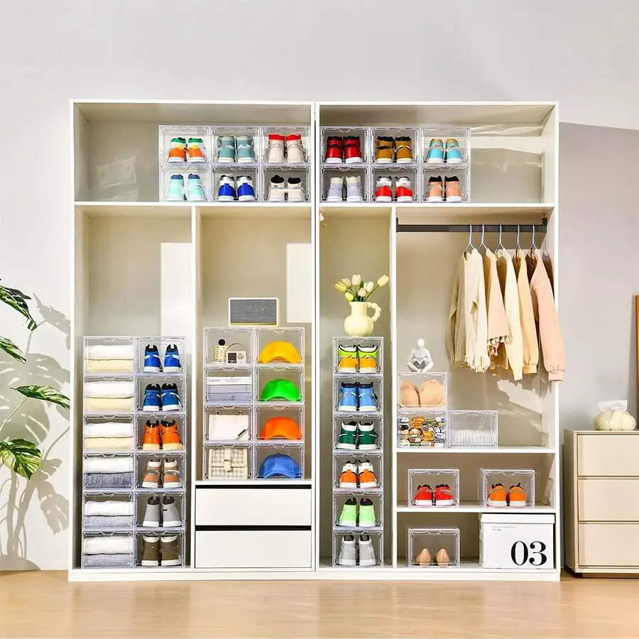 Made of durable hard plastic, these boxes are built to last. Perfectly stackable to save space and create a clean, uniform look in your closet. See your entire sneaker collection at a glance—no more digging! 🌟