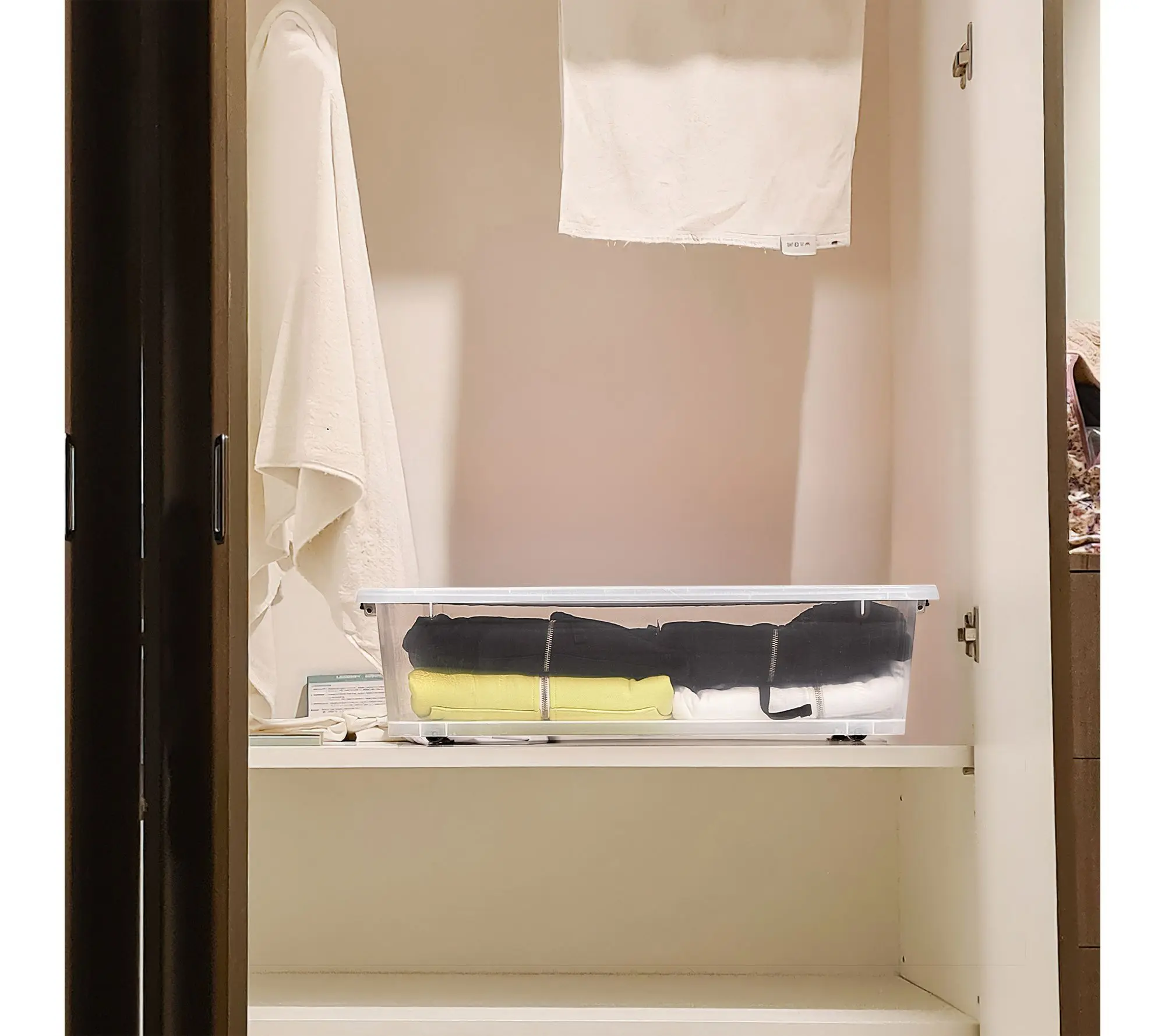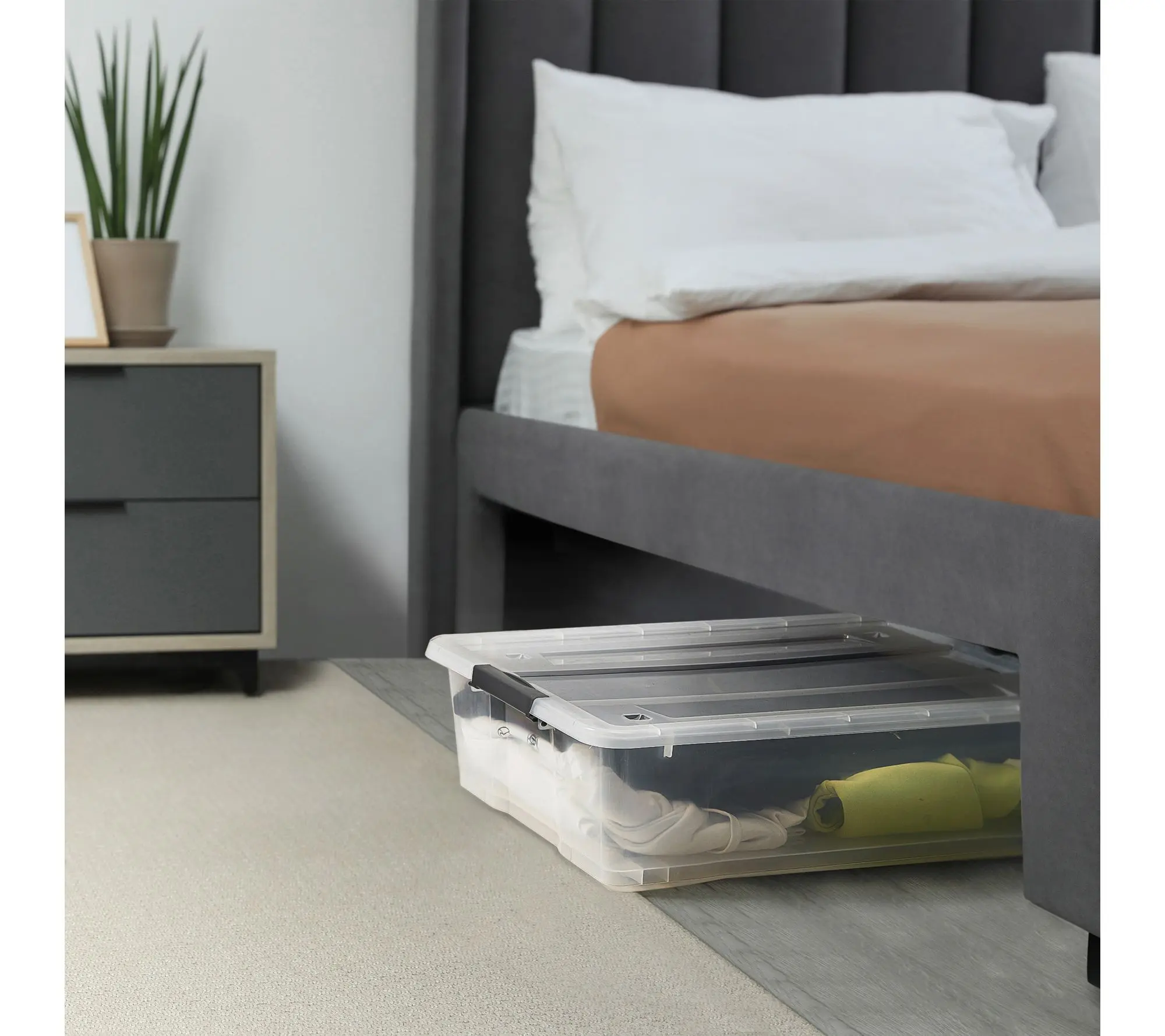 Stash away everything from off-season clothes to extra bedding in this spacious underbed storage bin. The clear, stackable design makes it easy to see what's inside while the snap-lock lid keeps items protected from dust, so tidying up feels completely effortless. Built-in handles allow you to slide it under beds or move it from room to room with ease. From Sorbus.