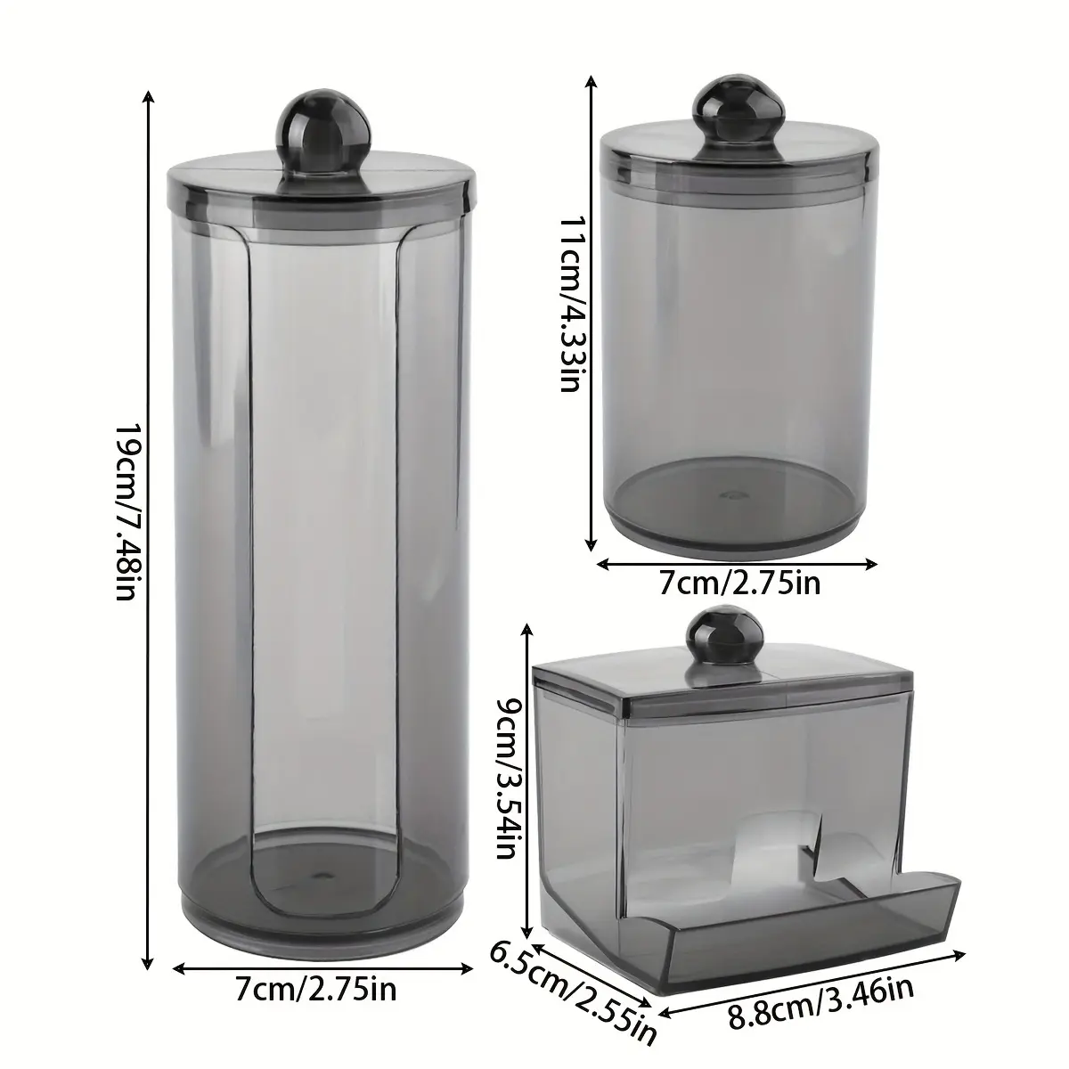 Clear Plastic Transparent Storage Box, 3 Counts/set Modern Simple Storage Jar Canister with Lid, Bathroom Accessories Set, Home Organizer for Cotton Swab, Ball, Pads, Floss, Bottles Containers
