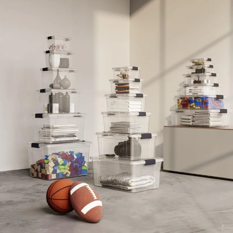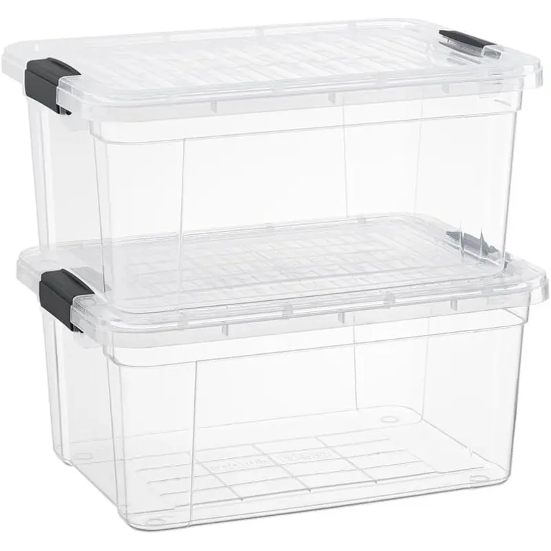 Clear Storage Boxes with Lids 2 Quart Plastic Container Bins for Organizing Stackable Crates BPA Free Non Toxic Odor Free Organizers for Home Office School and Dorm