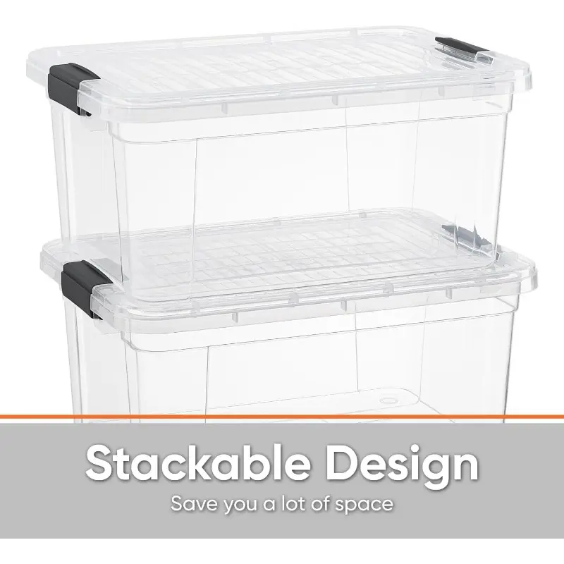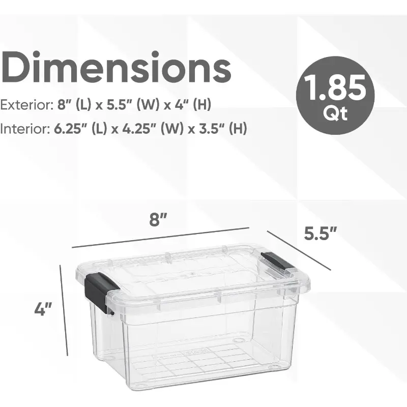 5. Clear Storage Boxes with Lids 2 Quart Plastic Container Bins for Organizing Stackable Crates BPA Free Non Toxic Odor Free Organizers for Home Office School and Dorm