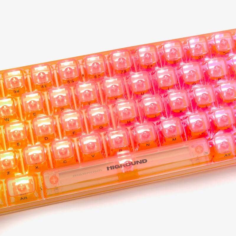 AKA The "Honey Keyboard" from TikTok and Youtube. Introducing our most transparent 65% keyboard. This exceptional piece showcases an all-polycarbonate construction throughout not only the keycaps, but also the frame and plate for a seamless, uniform aesthetic.