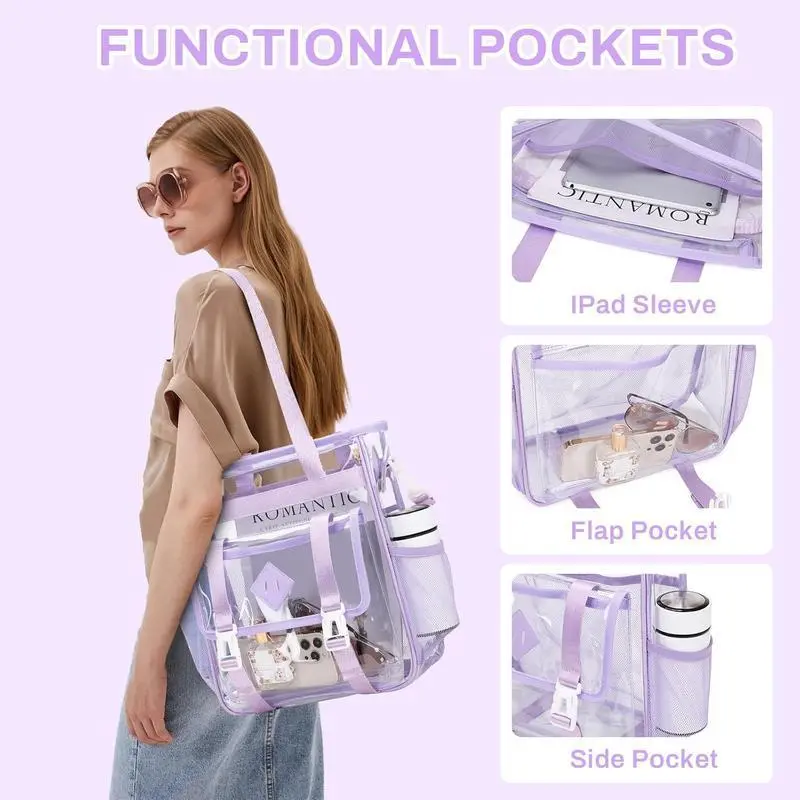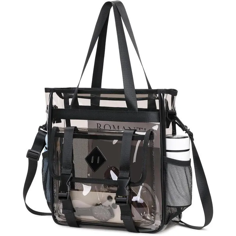 Clear Tote Bag Stadium Approved ? Product Overview ? This clear tote bag is stadium approved, ensuring it meets the necessary standards. Made from thickened heavy-duty PVC, it is water-resistant, making it suitable for various uses. The transparent design allows for easy visibility of its contents. Perfect for carrying essentials, this tote bag is a practical choice. ??? Material and Specifications The tote bag is constructed from synthetics, ensuring durability and water resistance. Its dimensions of 12x6x12 inches provide ample space for your belongings. The thickened heavy-duty PVC material adds to its strength and reliability. ?? This tote bag is a practical choice for those needing a transparent, water-resistant bag. Its stadium approval ensures it is suitable for various occasions. ??