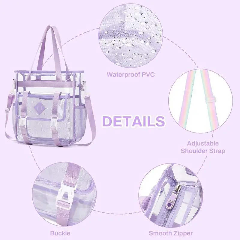 5. Clear Tote Bag Stadium Approved 12x6x12, Thickened Heavy Duty PVC Transparent Tote Bag Water Resistant