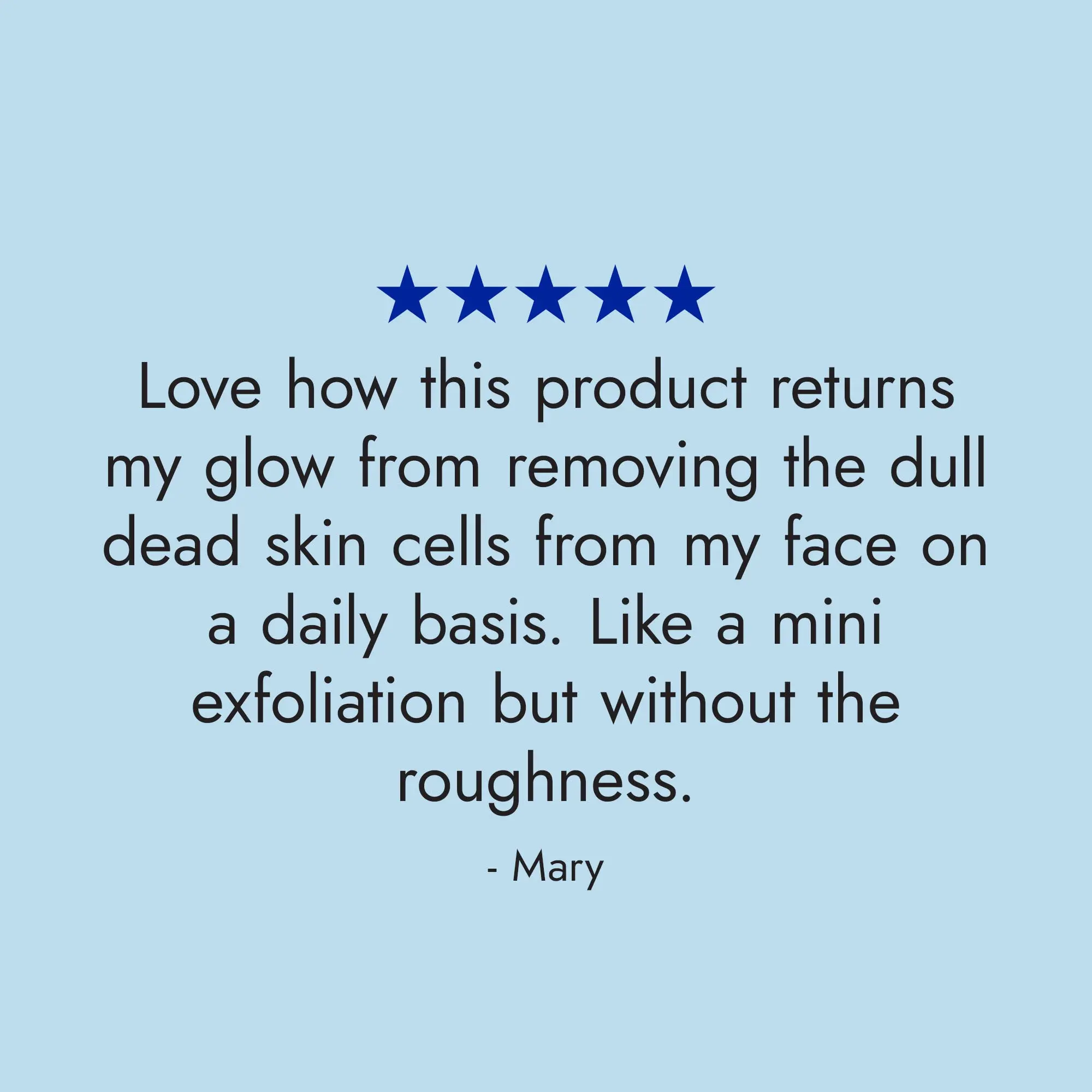 Love how this product returns my glow from removing the dull dead skin cells from my face on a daily basis. Makes my makeup look great after removing the dull dead skin - glad I discovered it. Like a mini exfoliation but without the roughness.