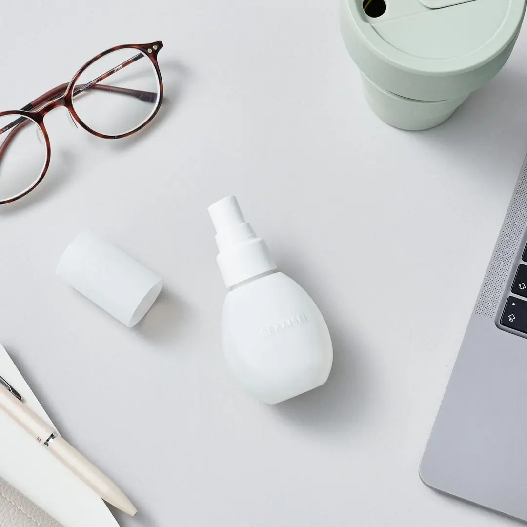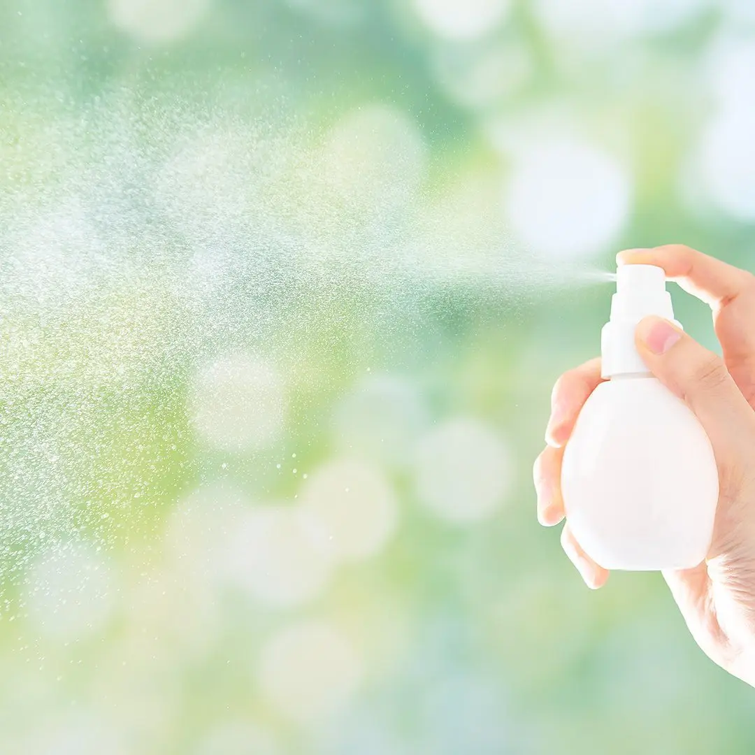 ·Hold bottle 7-8 inches from face. Keep eyes and mouth closed and spray evenly (2-3 times).