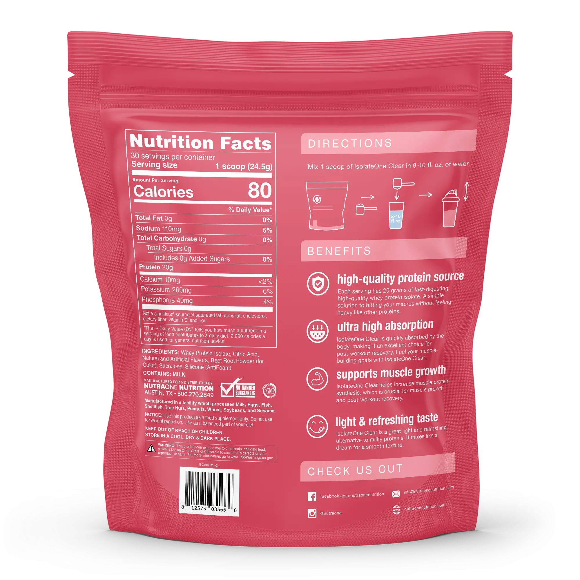 ·Rapid Absorption: IsolateOne Clear is quickly absorbed by the body, making it an excellent choice for post-workout recovery. Fuel your muscle-building goals with IsolateOne Clear.