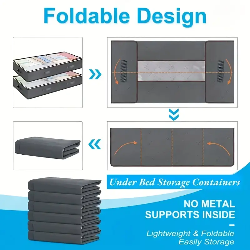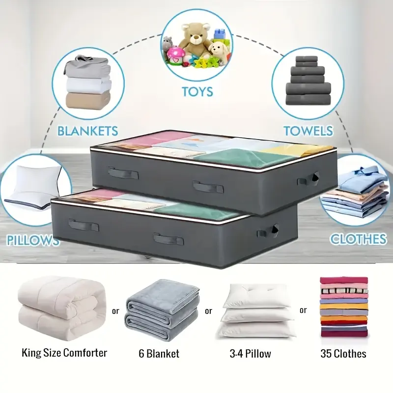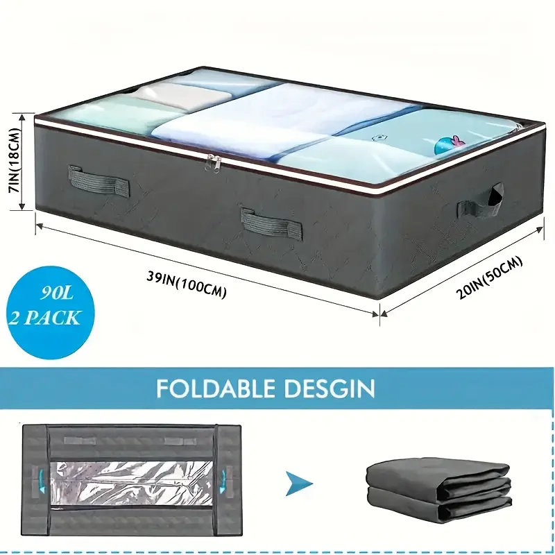 23.78 Gallons, Clear Window, Under-bed Storage Box - Multi-functional Wardrobe Organizer for Toys, Clothes, Blankets, and Quilts - 2-Piece Bedside Storage Set for Bedroom and Dormitory, Under-bed Storage (Compatible with 10,000+ Beds)