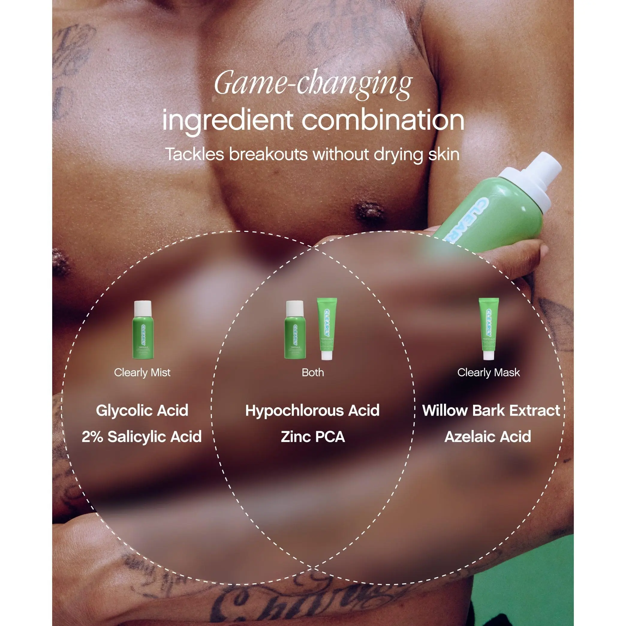 Experience the benefits of a two-step routine that combines clear mist and clear mask to help clear, calm, and prevent breakouts while supporting the skin barrier.