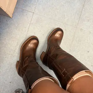 Okay I seriously love these boots. They’re giving subtle cowgirl and are such a beautiful chocolate brown color. I’m a size 6 in street shoes but saw reviews saying to size up so I got 6 1/2. Glad I did cause I can definitely wear thicker socks in the winter without it squeezing my toes.