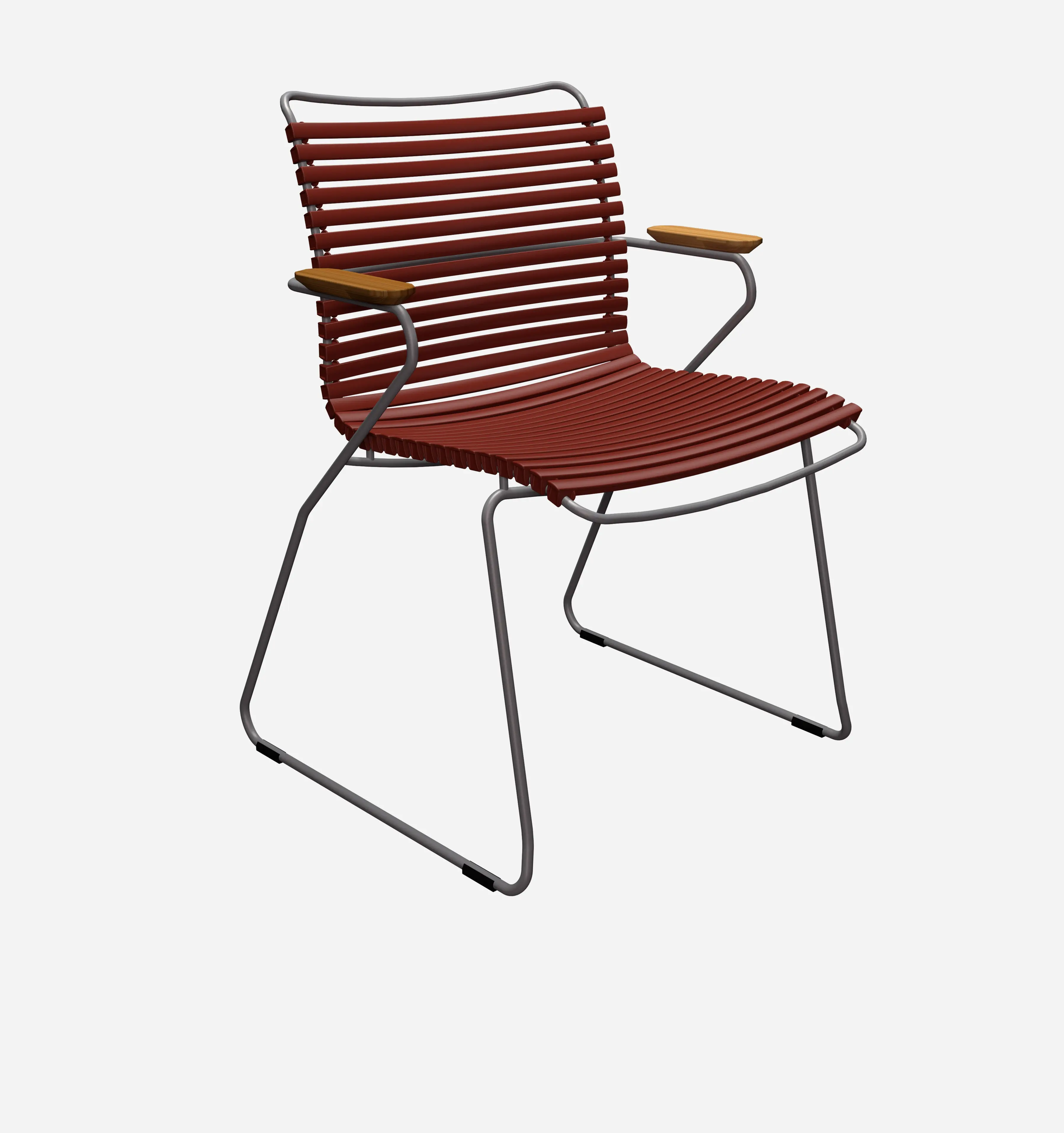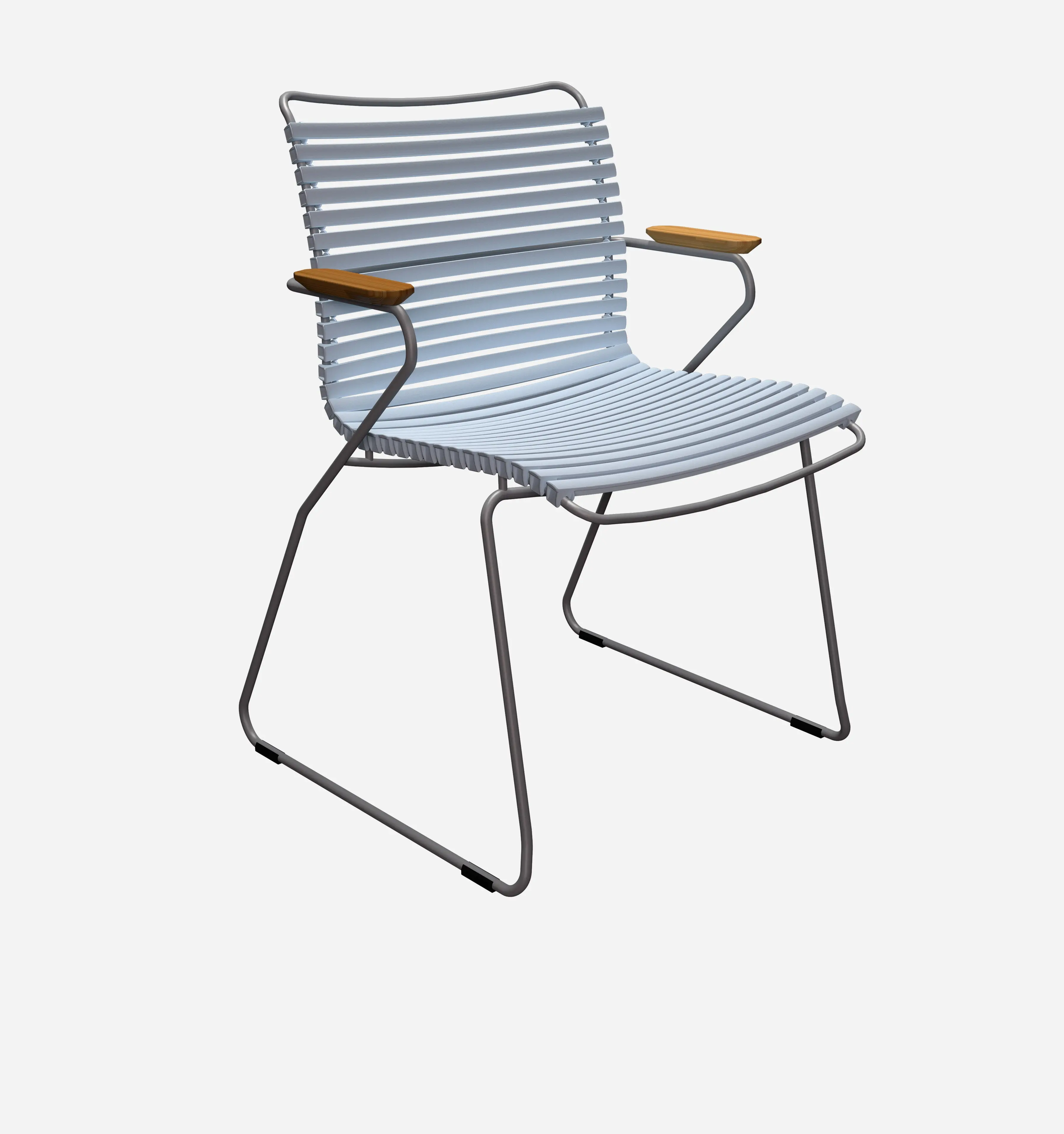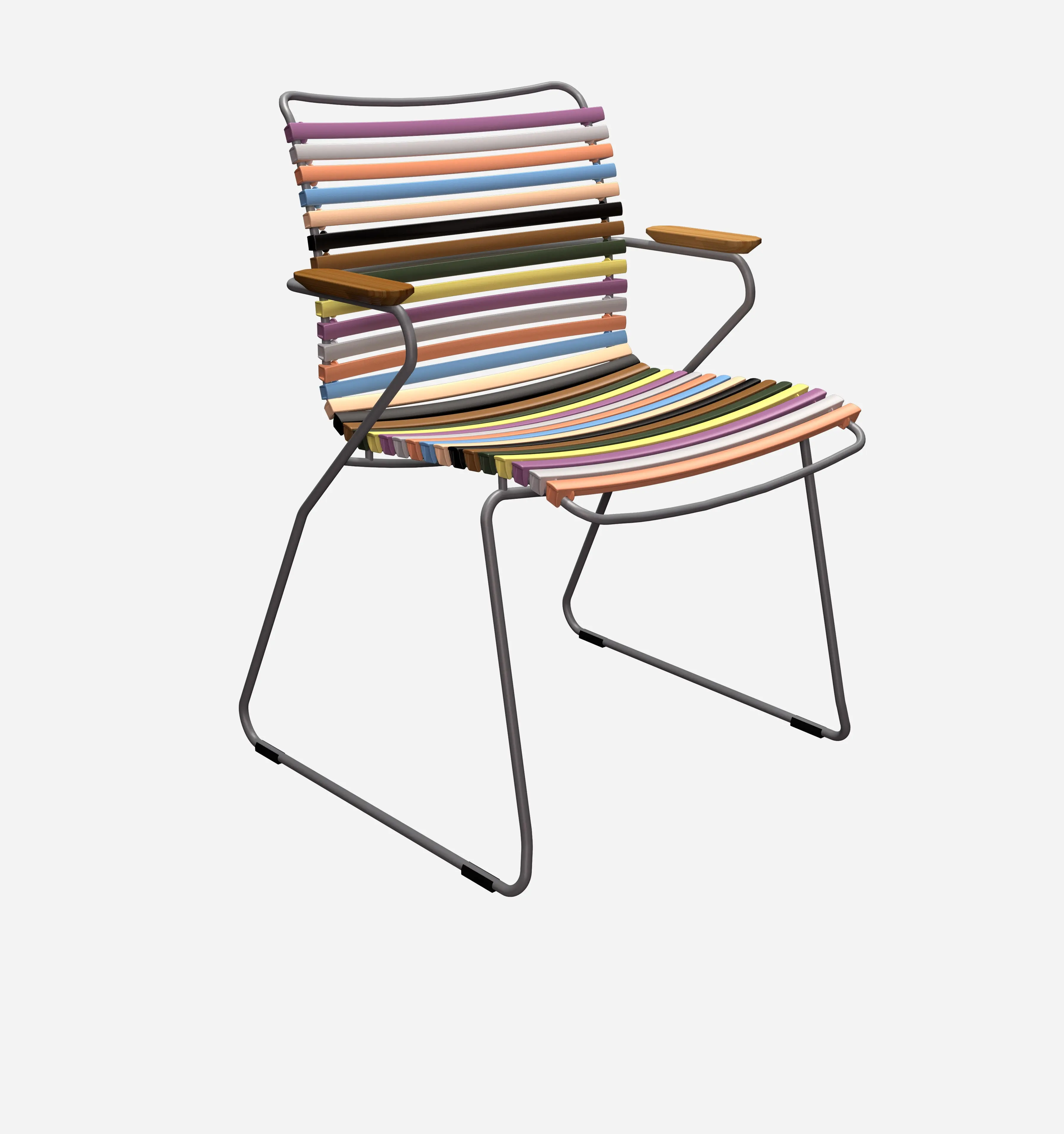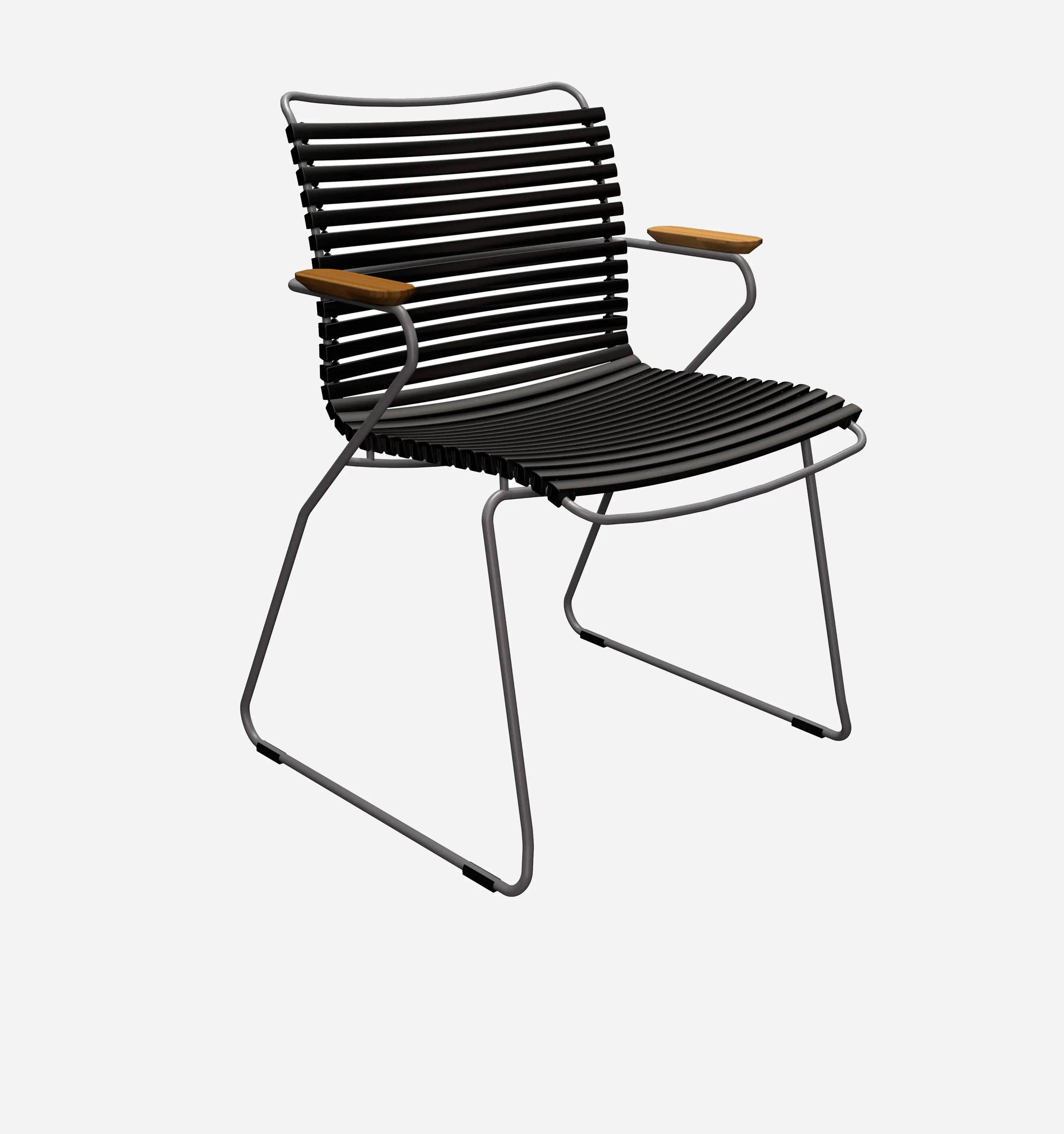 The Click Armrest Dining Chair is available in a variety of elegant colors, including black, dark blue, and sand, allowing you to choose the perfect option for your dining room decor. The exposed lamellas can be easily clicked on or off for color mixing, providing a customizable and unique design element. This chair is stackable for convenient storage and features a durable construction of plastic and powder-coated metal. The bamboo armrest adds a touch of warmth and sophistication to the overall design. With dimensions of 17.52H x 23.82W x 22.44D inches, this chair offers a comfortable and stylish seating option for your dining area.