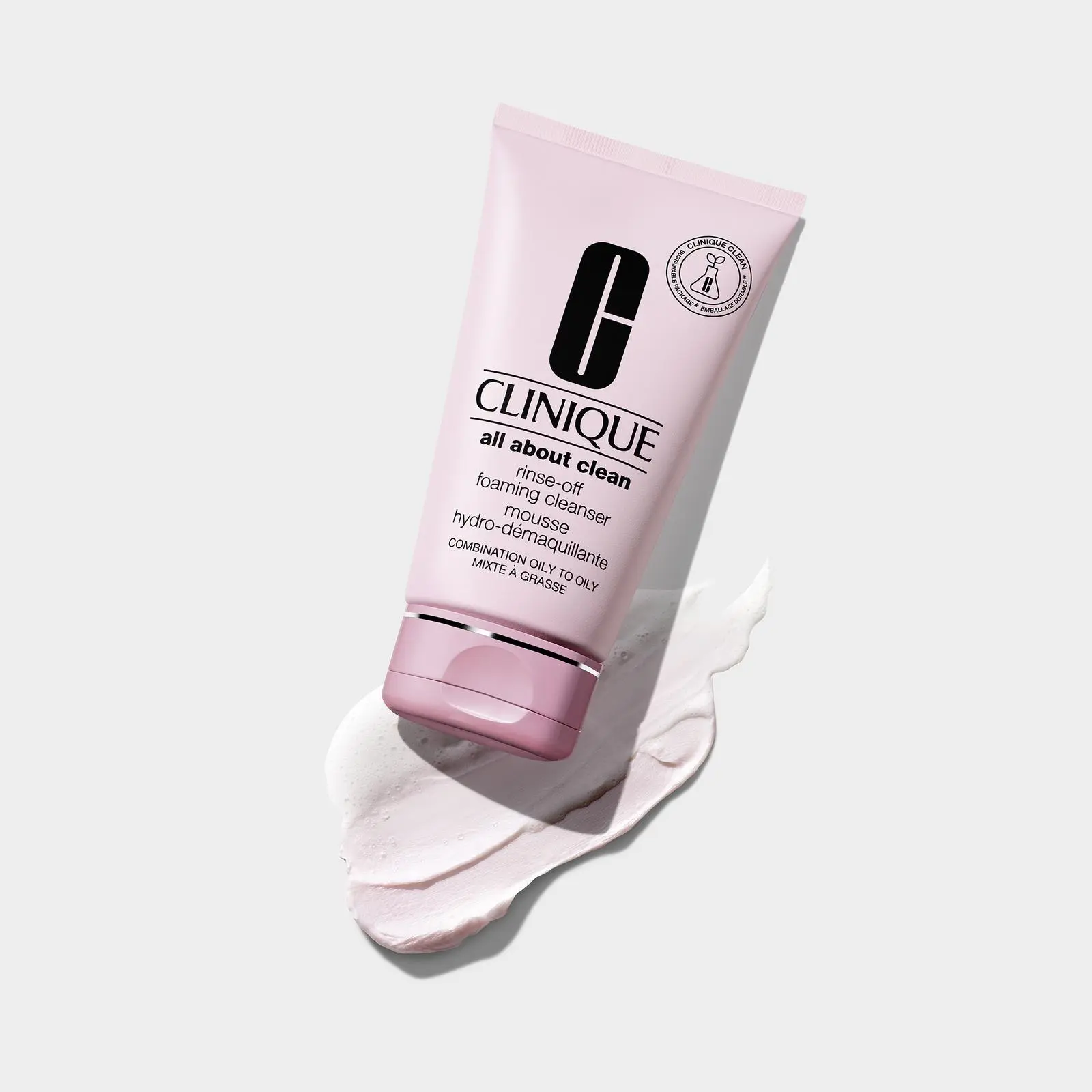 Clinique’s All About Clean™ Rinse-Off Foaming Cleanser is a mousse cleanser that gently and effectively rinses away makeup.