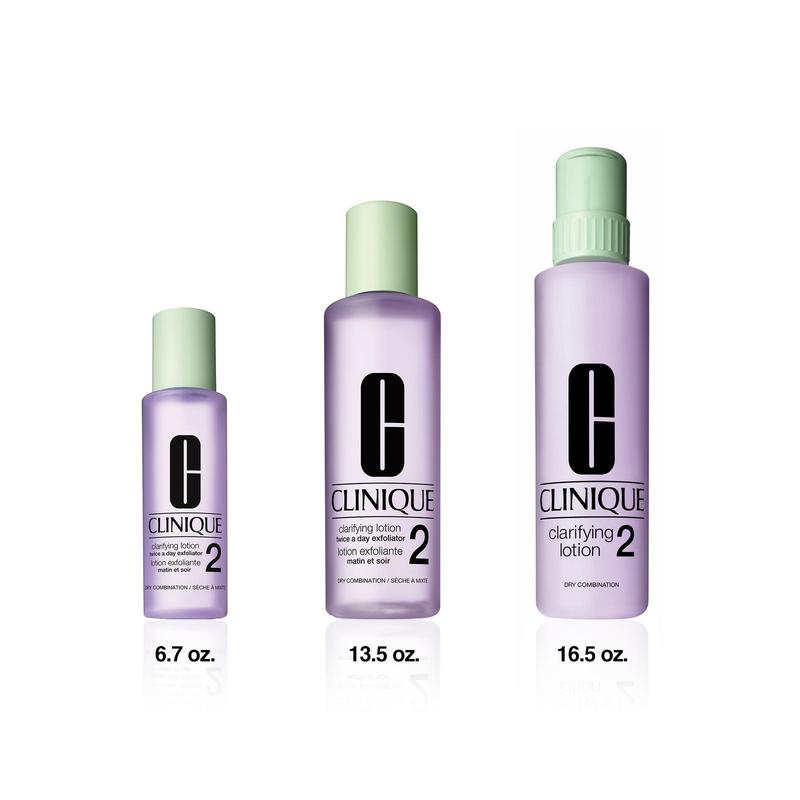 Clinique Clarifying Lotion is available in 5 skin-typed formulas.