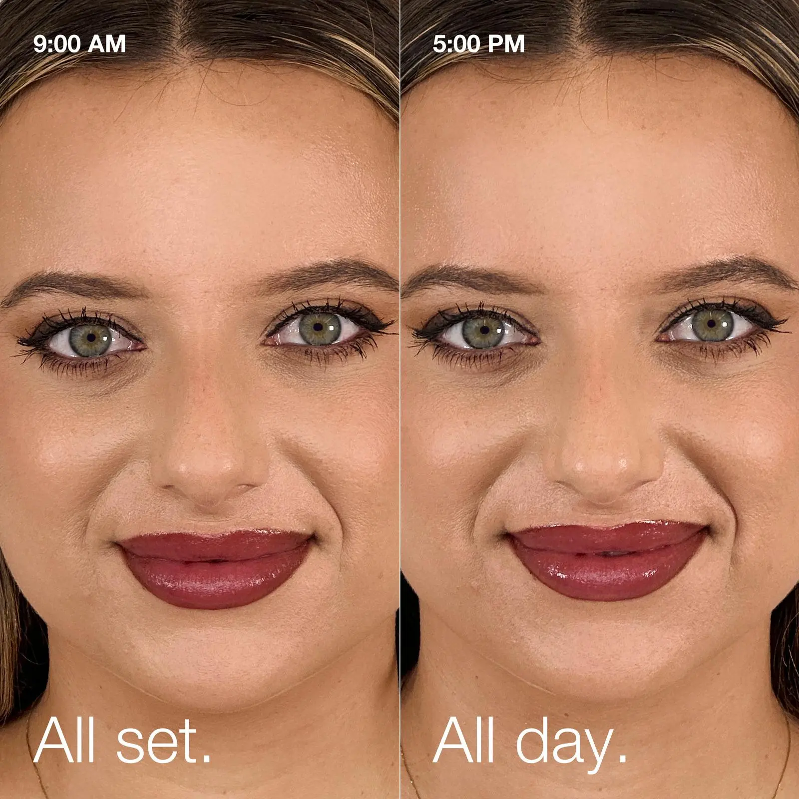 Alcohol-free formula sets makeup all day to keep it looking fresh.