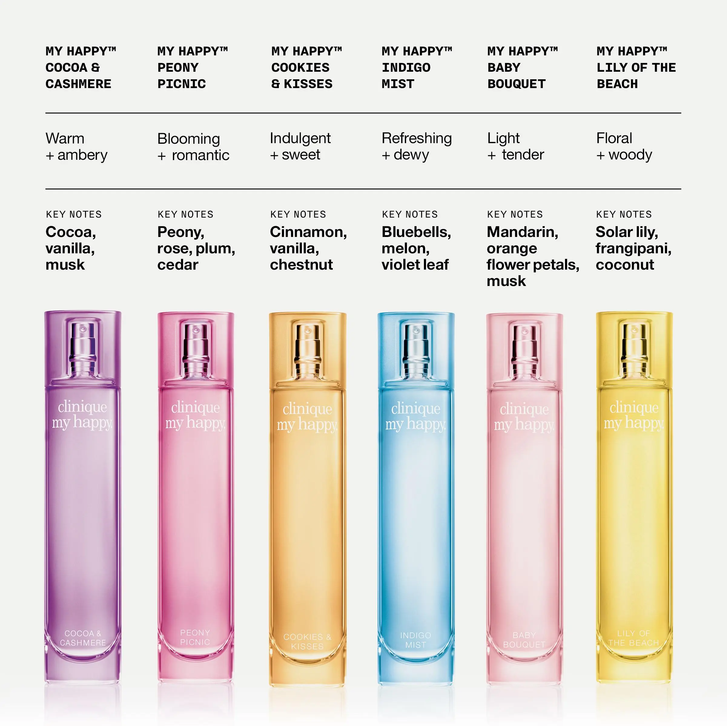 Mix your own scent memories with 6 different Clinique My Happy™ fragrances. Sold separately.