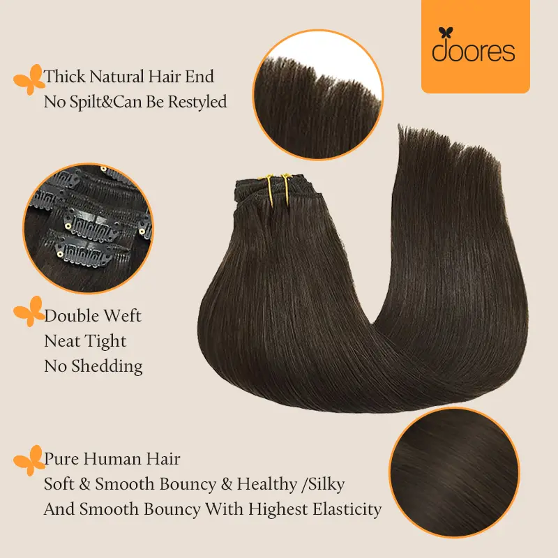 【Soft & Comfortable Clip-in Extensions】DOORES 9-piece 150g clip-in extensions are ultra-soft, with full ends and no split ends, giving you silky smooth hair. Handcrafted with double-layer wefts for a secure fit.