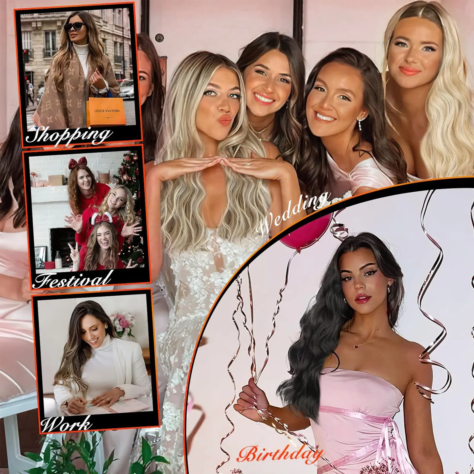 Great extensions that you can take out to sleep, wash your hair, and don’t have to pay to get adjusted. It’s a WIN! I already have pretty long hair, but this added the right amount of thickness and extra length. I’m obsessed! The clips are so easy to hide and it feels very secure. Impressed!!