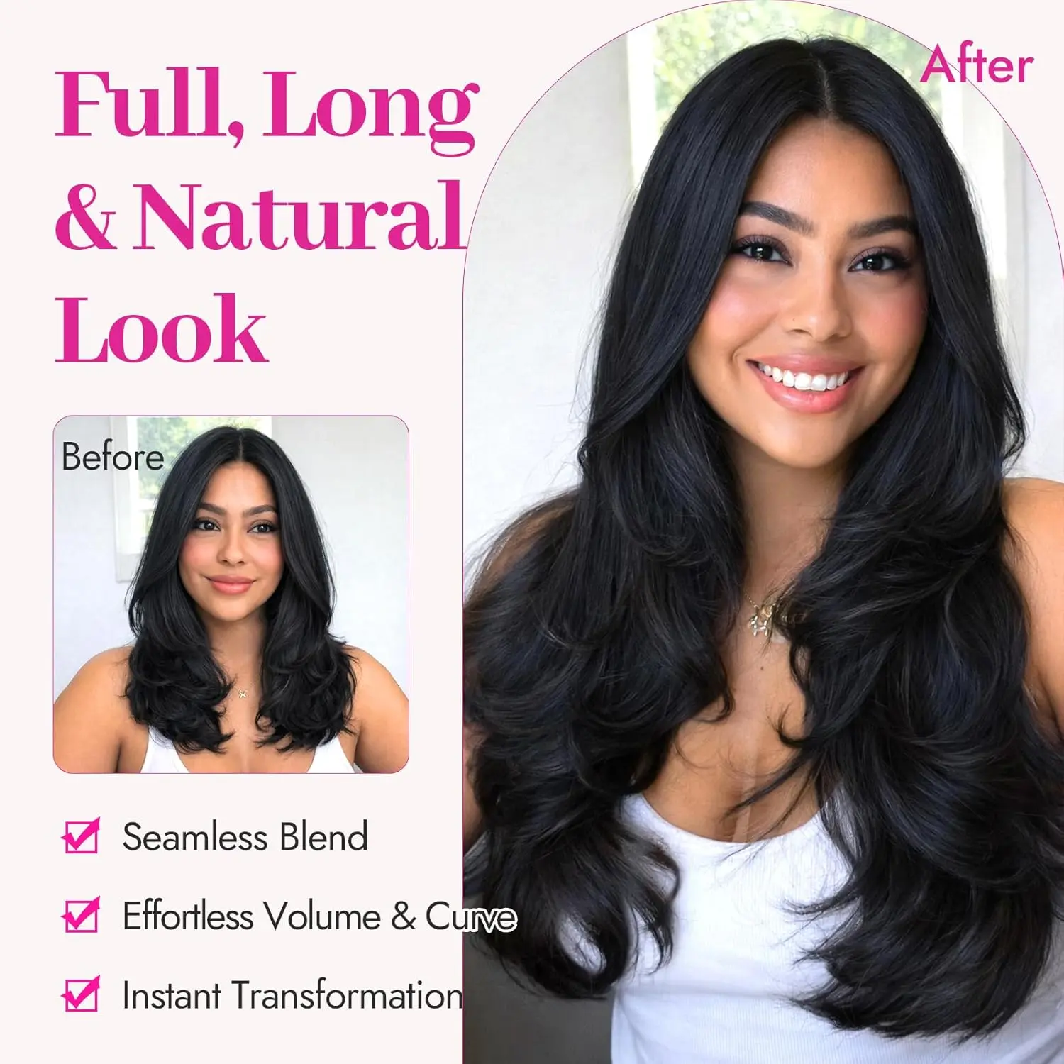 ·¡¾More comfortable & invisible¡¿ The specially designed double Weft hair extensions is light and breathable, reducing the pressure on the scalp, and can remain comfortable even when worn for a long time, suitable for daily or special occasions