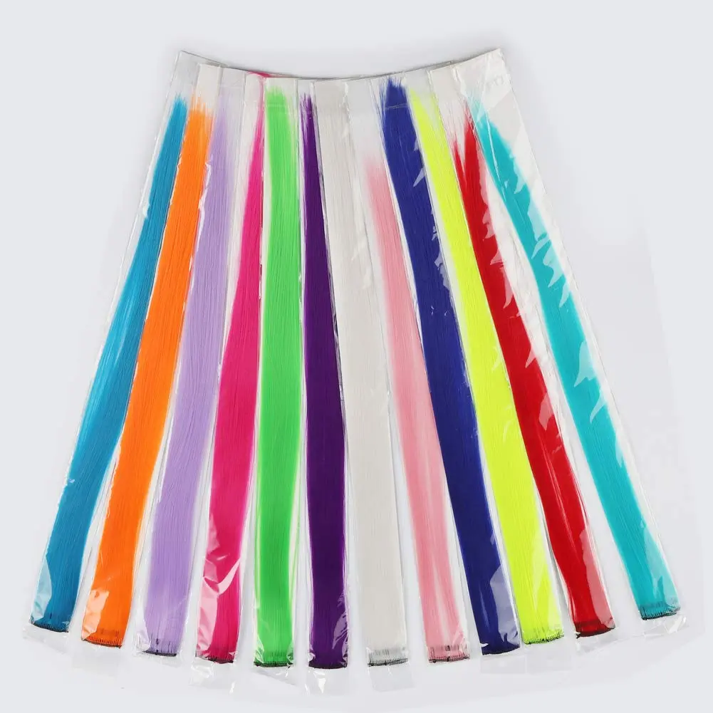 ·12 Beautiful Color Combinations: This hair extensions kit contains 12 different colors of hairpieces. Including Orange, Sky Blue, light purple, rose red, Grass Green, Deep Purple, White, Peacock Blue, Fluorescent Green, Red, Royal Blue, and Pink. You can match different colored hairpieces together. Ideal gift choice for family and friends.