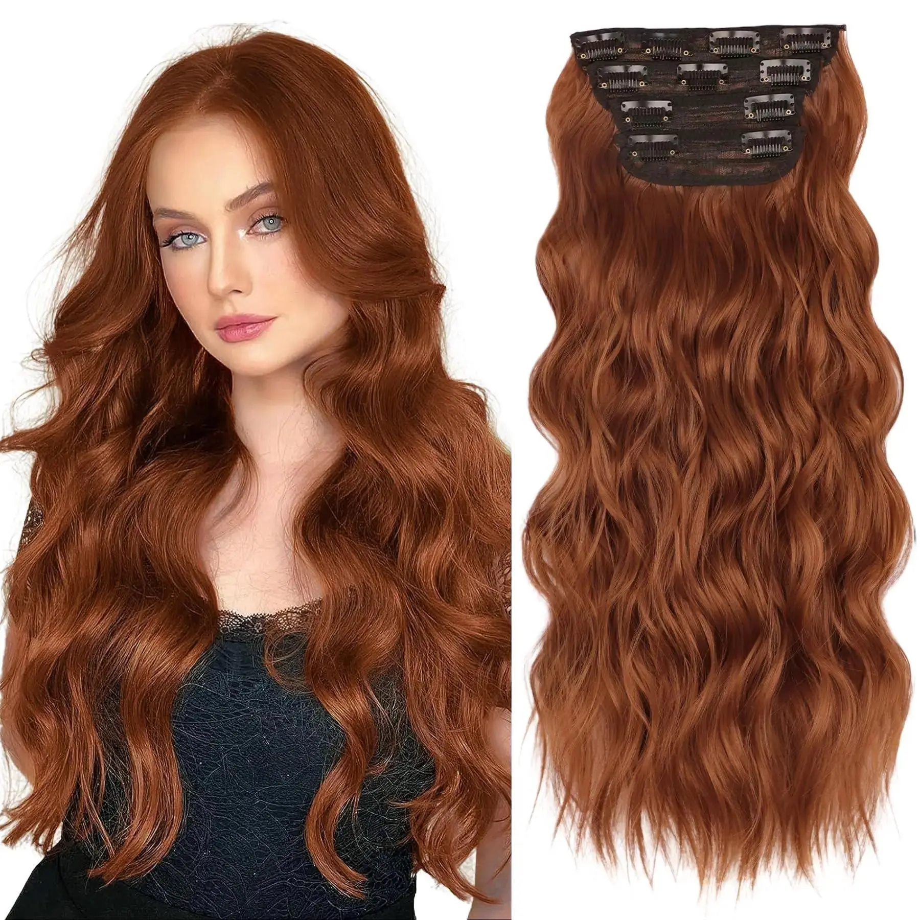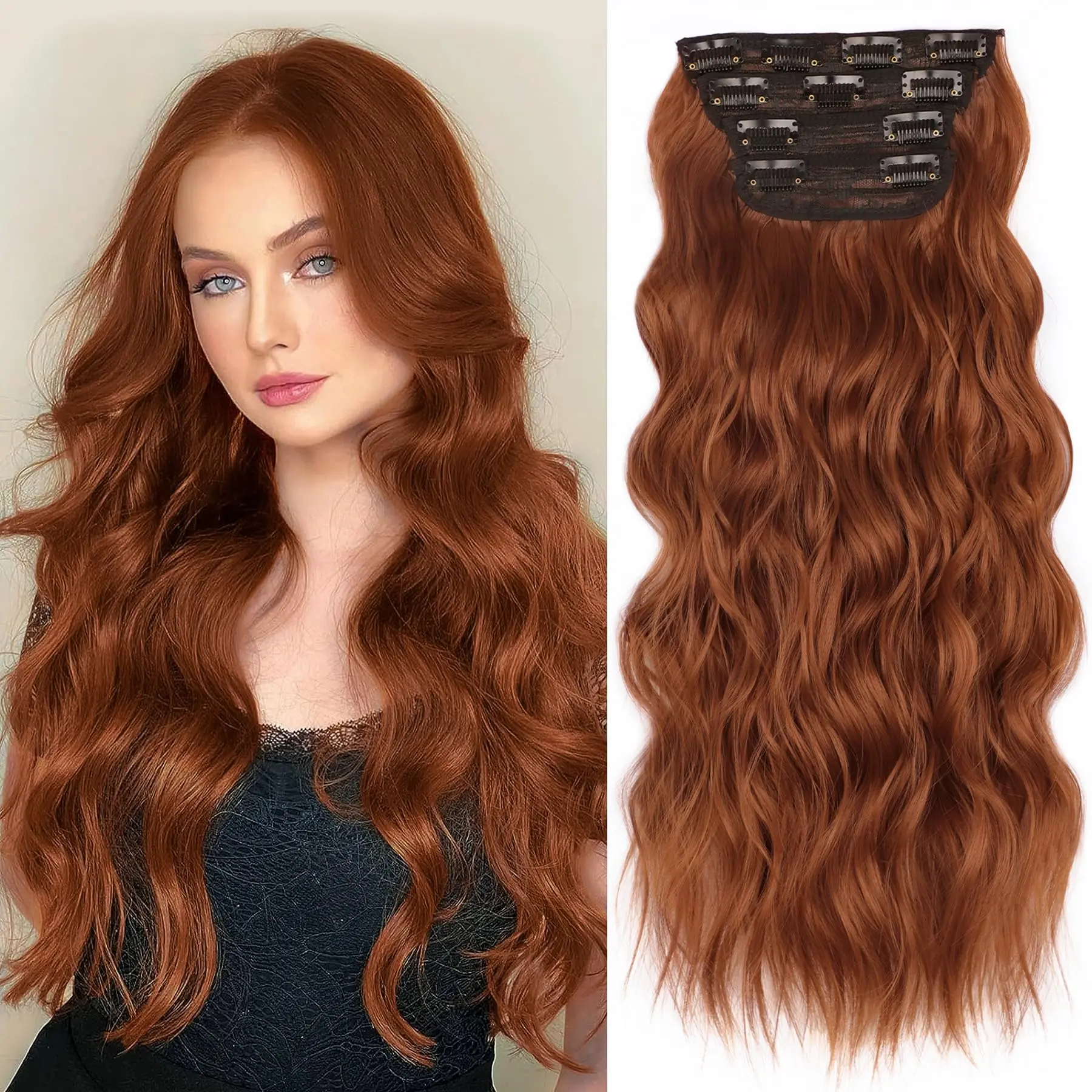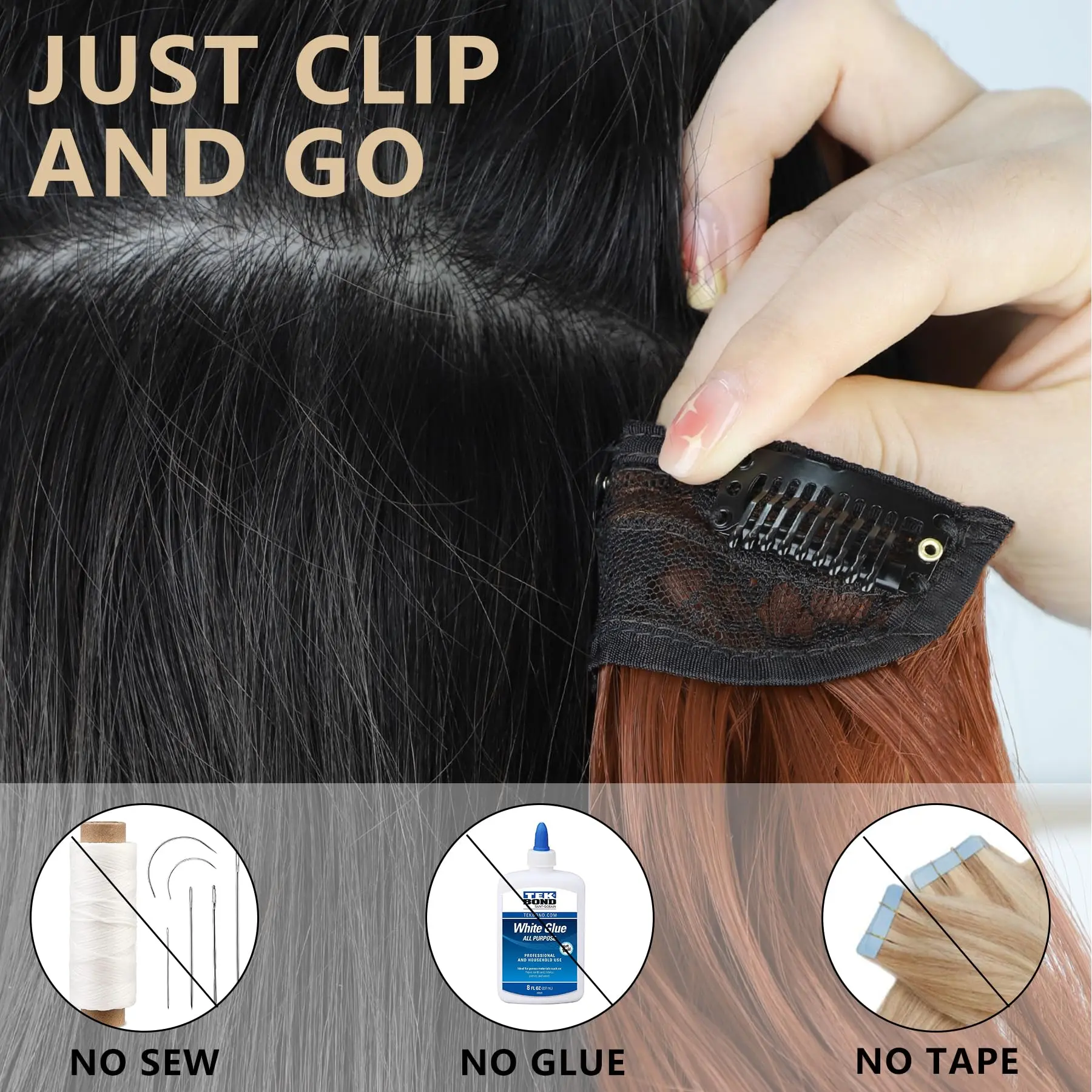 【4PCS Clip-in Advantages】No tape or glue needed—just clip in for a damage-free, comfortable fit in minutes. Safe for cutting, perming, and washing.