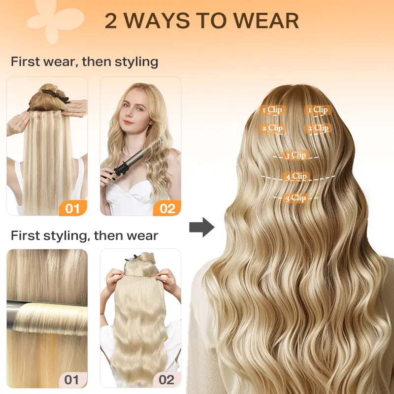 ·【Updated Soft PU Strips--NO stiff & No pleated,Human Hair--Can Be Styled】--We use soft PU strips, which will make the PU clip hair extensions fits seamless to the scalp and keep it from deforming fora long time. 100% human hair can be dyed and styled.
