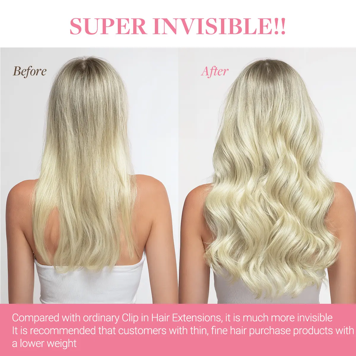 My hair is thin and so the invisi clip would be ideal the wefts are thin as well so it didn't add much thickness and you can see them in my hair cause my roots need to be done so blah
