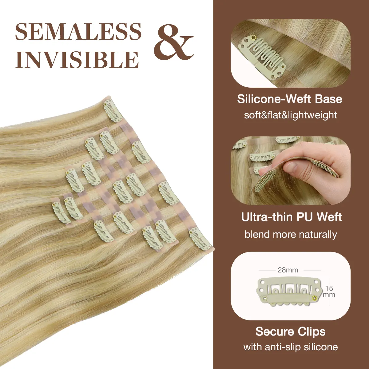 Great extensions keep making these will order more since they are seemless and so soft to blend in with your hair