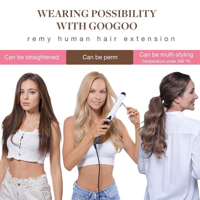 ·【GOOGOO 9A Level Human Hair】Real human hair, as soft as your own hair. Hair can be washed, styled, dyed etc. When styling it, control the temperature at 320℉-390℉.They will last you about 2-3 months with good care.