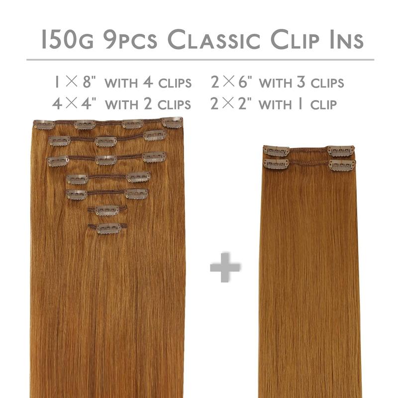 ·【Clip In Hair Extensions Specification】- WENNALIFE clip in hair extensions real human hair. The packaging consists of two parts: 2 test pieces on the top layer & 1 set of classic clip in hair which is 7 pieces 120g in the inner box. This set is 135g net weight without clips, 150g with clips. 1 pack is enough for fine hair, 2 packs are recommended if prefer thick hair.