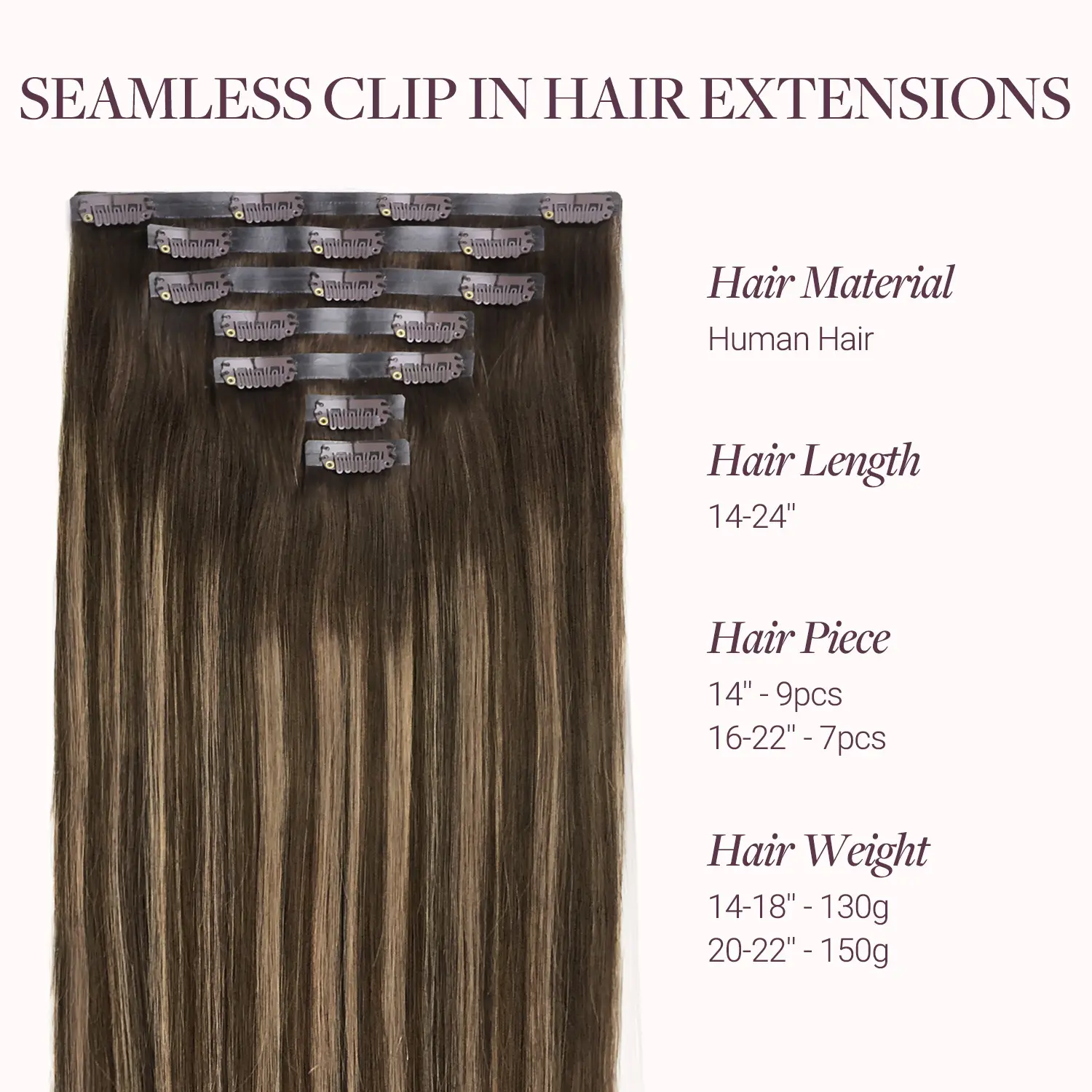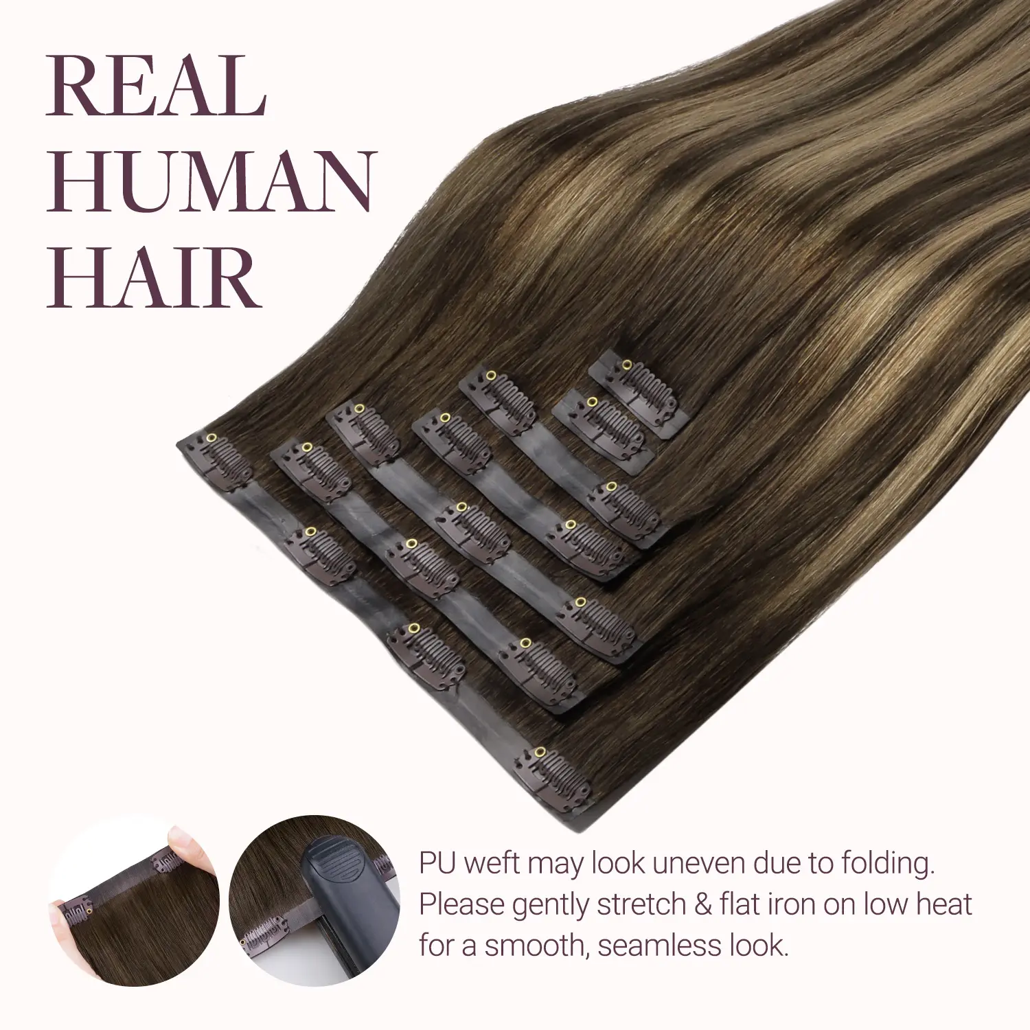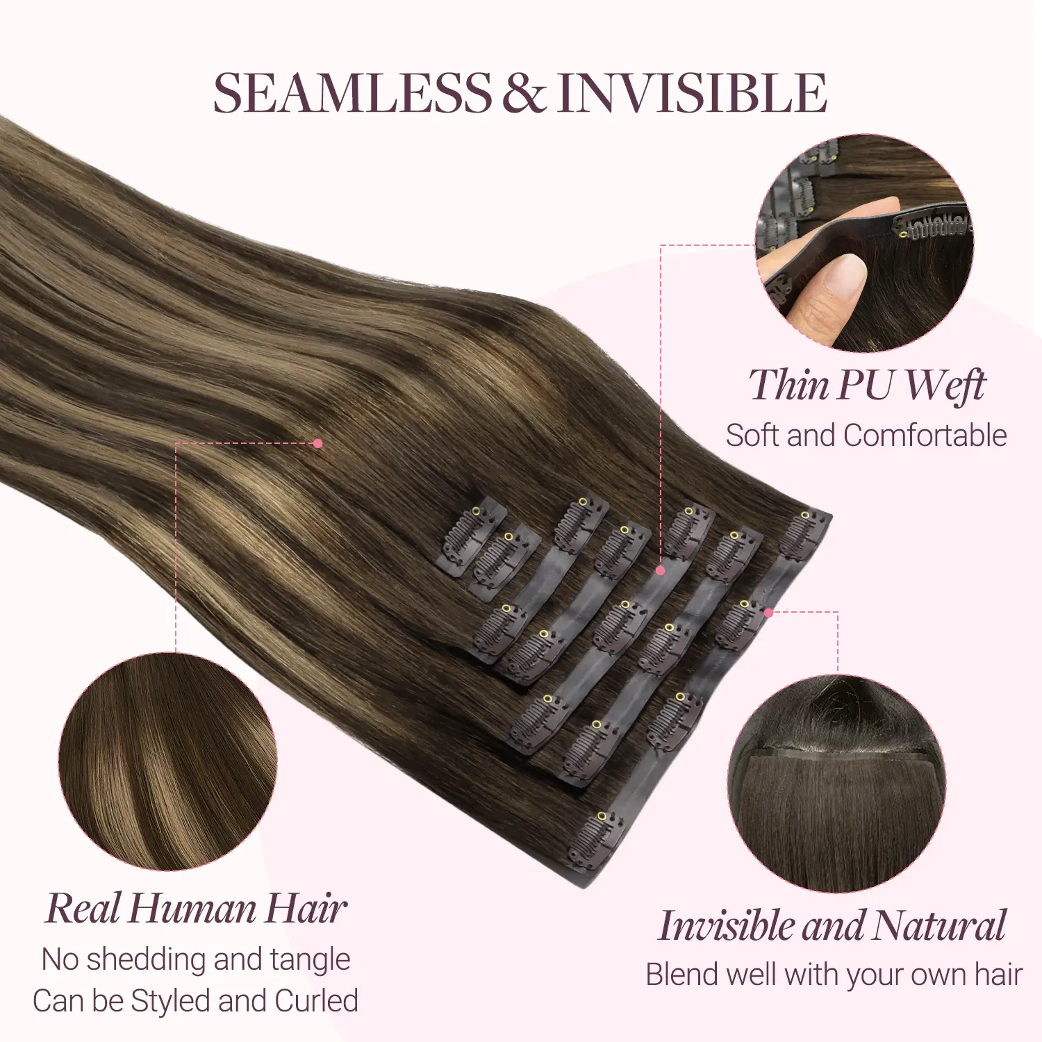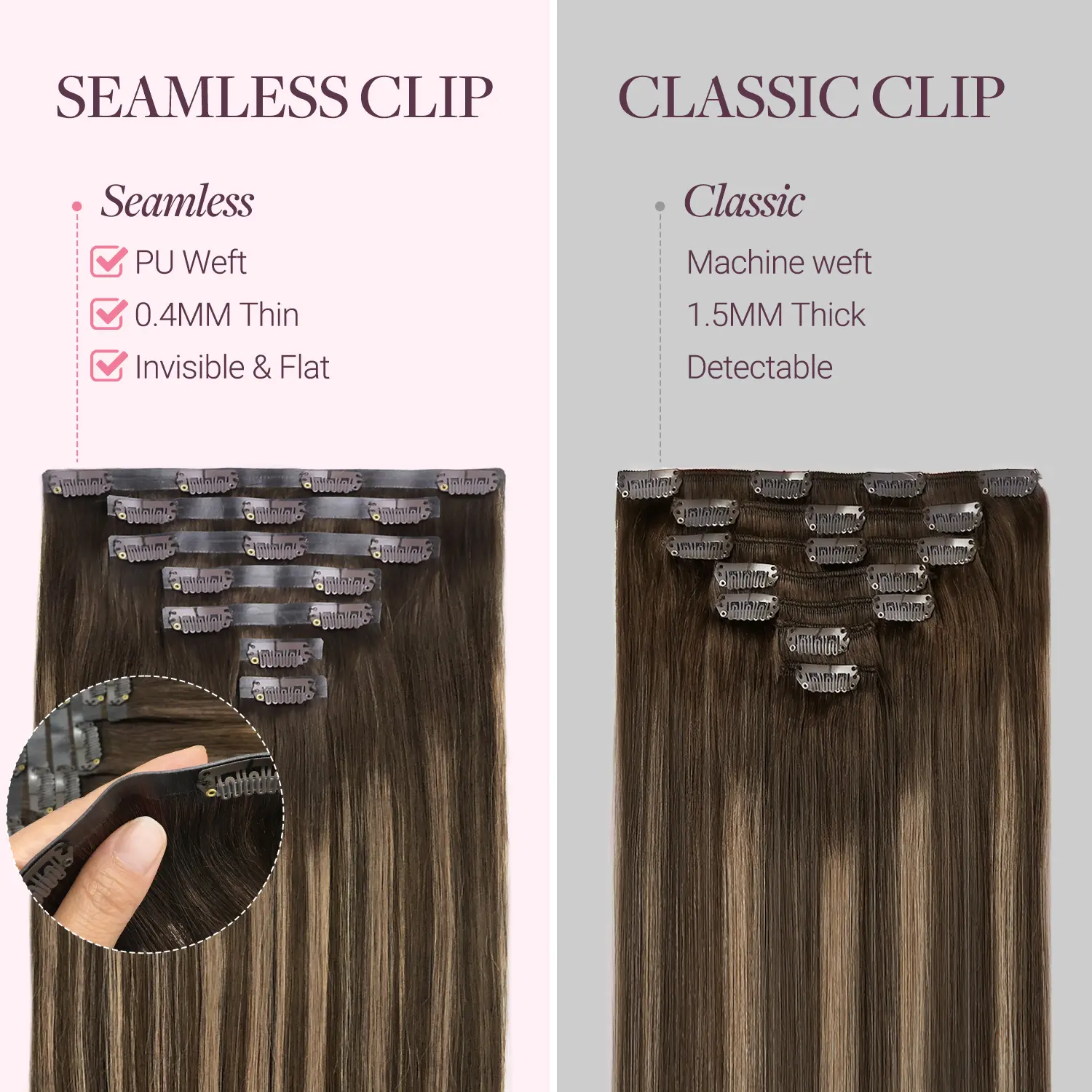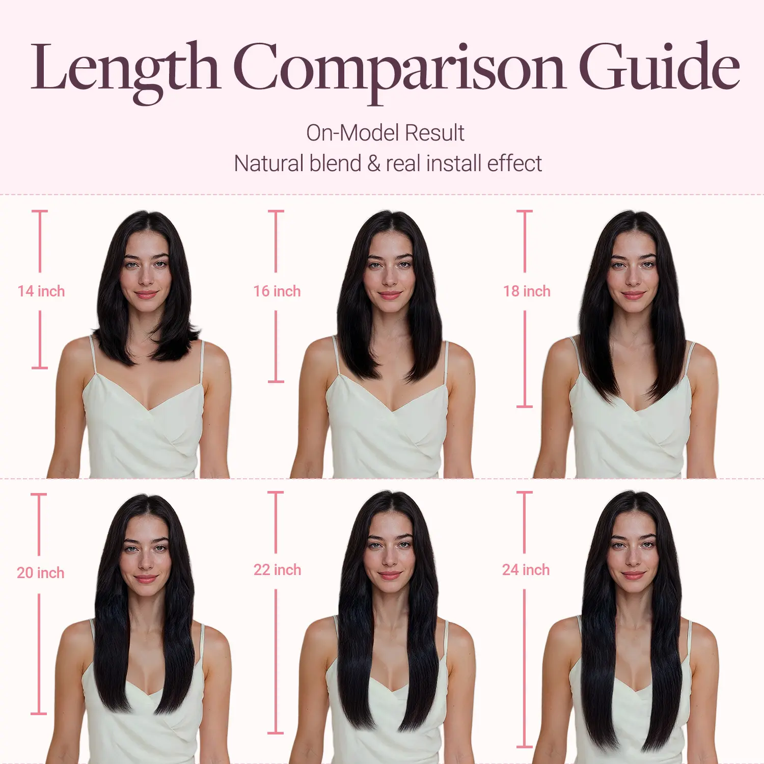 2、Full Head in One Pack - Thicker and Convenient: Utilizing the latest skin-weft technology, our PU clip-in extensions evenly distribute more hair on the PU strip compared to traditional clip-ins. Available in 14, 16, 18, 20, and 22 inches, each pack ensures a thick, luxurious look from top to bottom. Easily switch up your style for any occasion with just one pack.