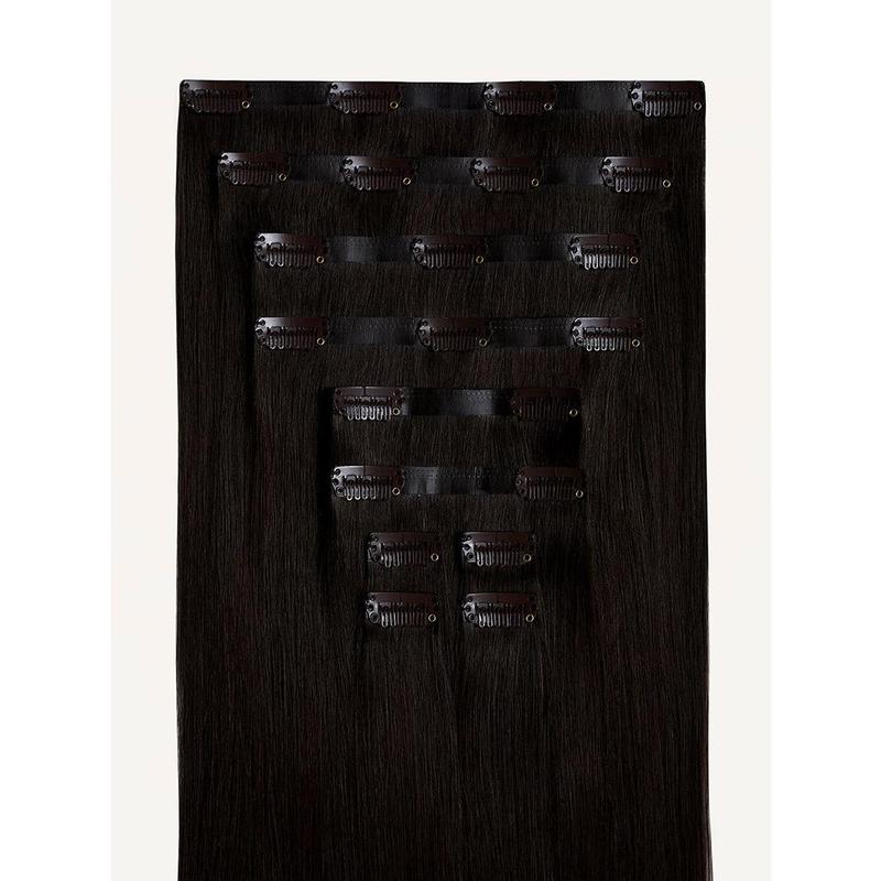 Our popular Seamless clip-in Collection is made from 100% remy human hair and is the ideal way to add volume and/or length to your hair. The Seamless Collection comes with 10 wefts – or pieces – that can be easily clipped in and removed from your natural hair. This collection is perfect for those with thin to medium hair densities, as the silicone-based wefts lay flat against the scalp and make them less noticeable in thinner hair.