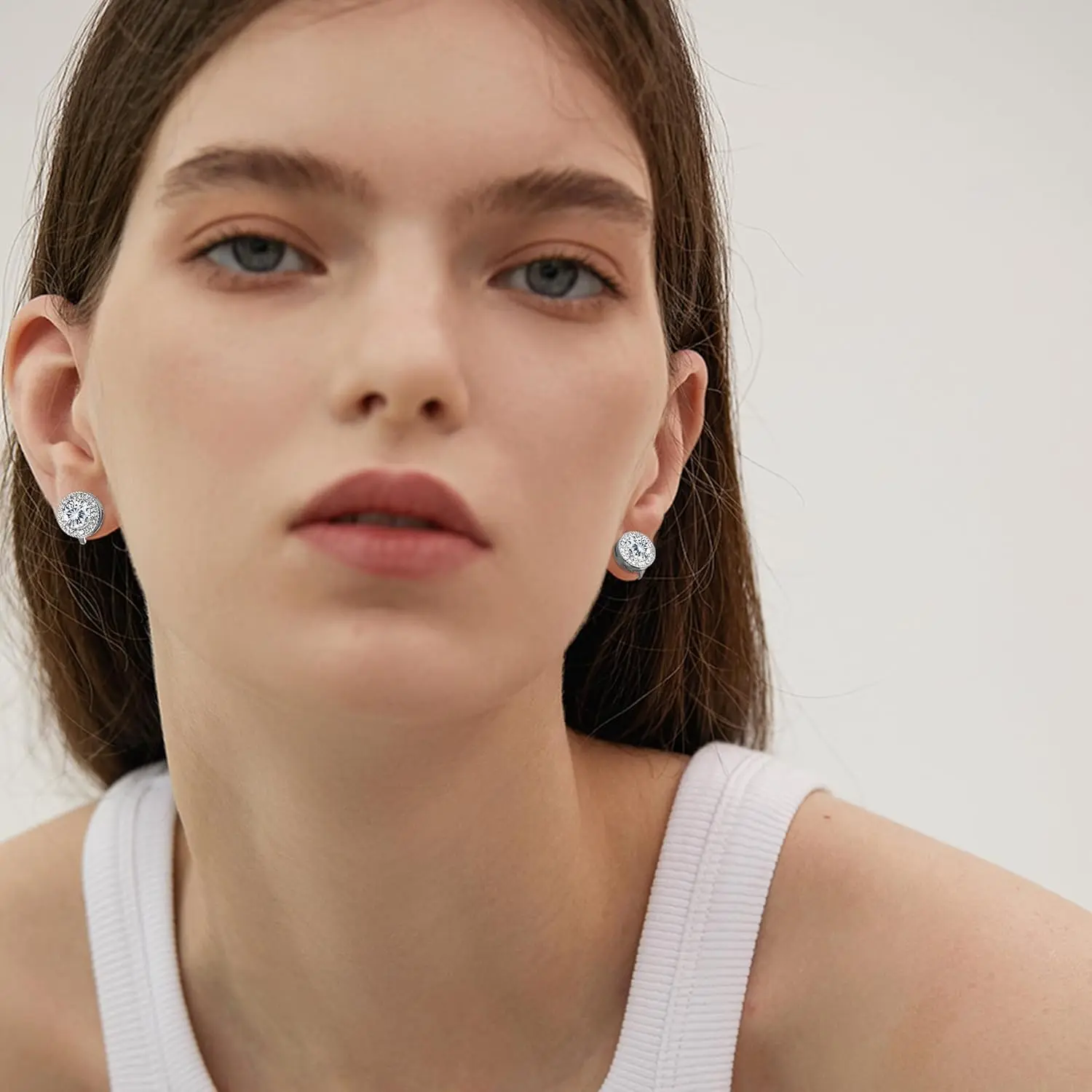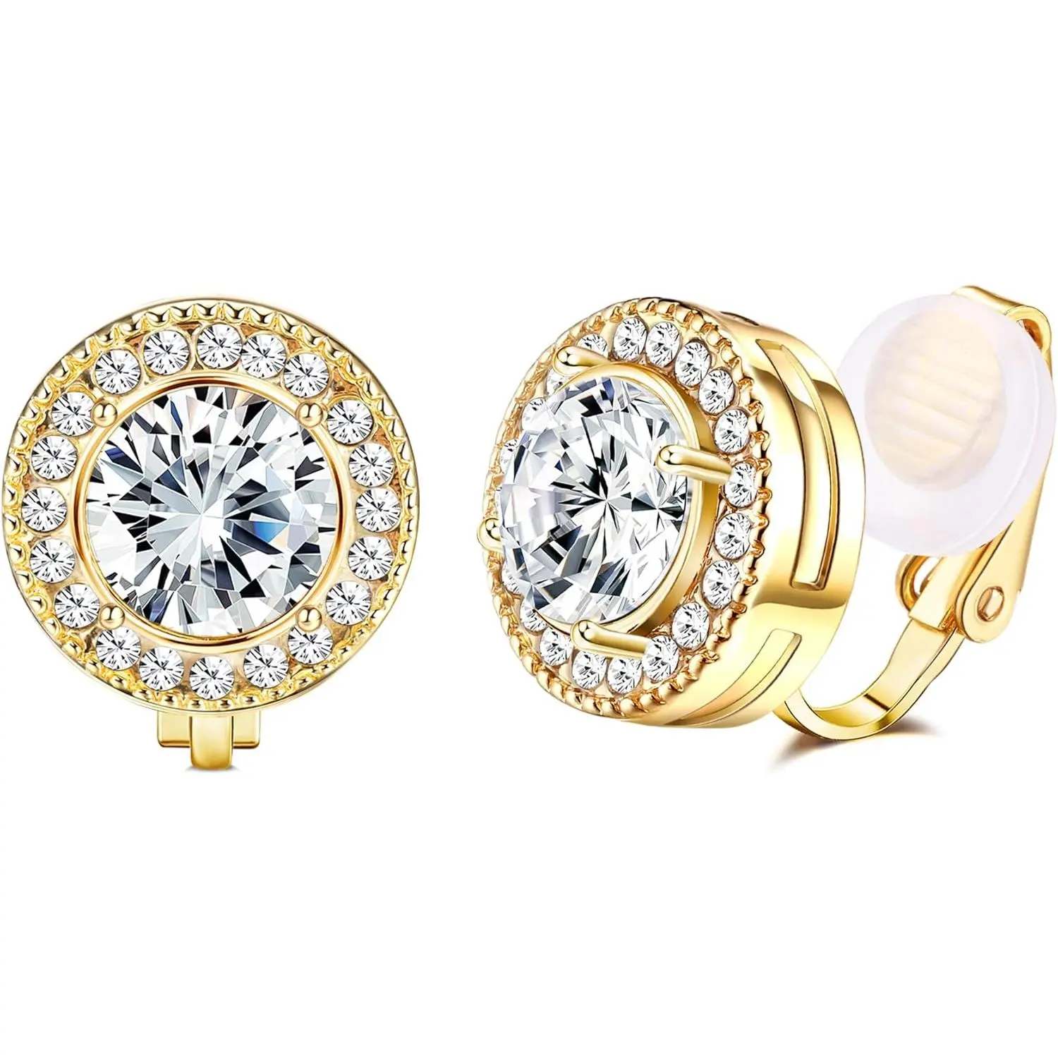 High Quality Material: The halo stud clip on earrings made of high quality alloy and 5A cubic zirconia, diameter: 12mm, center stone:7mm, lead free, nickel free, high polishing surface and lightweight, which will not burden your ears too much, comfortable to wear a long time.