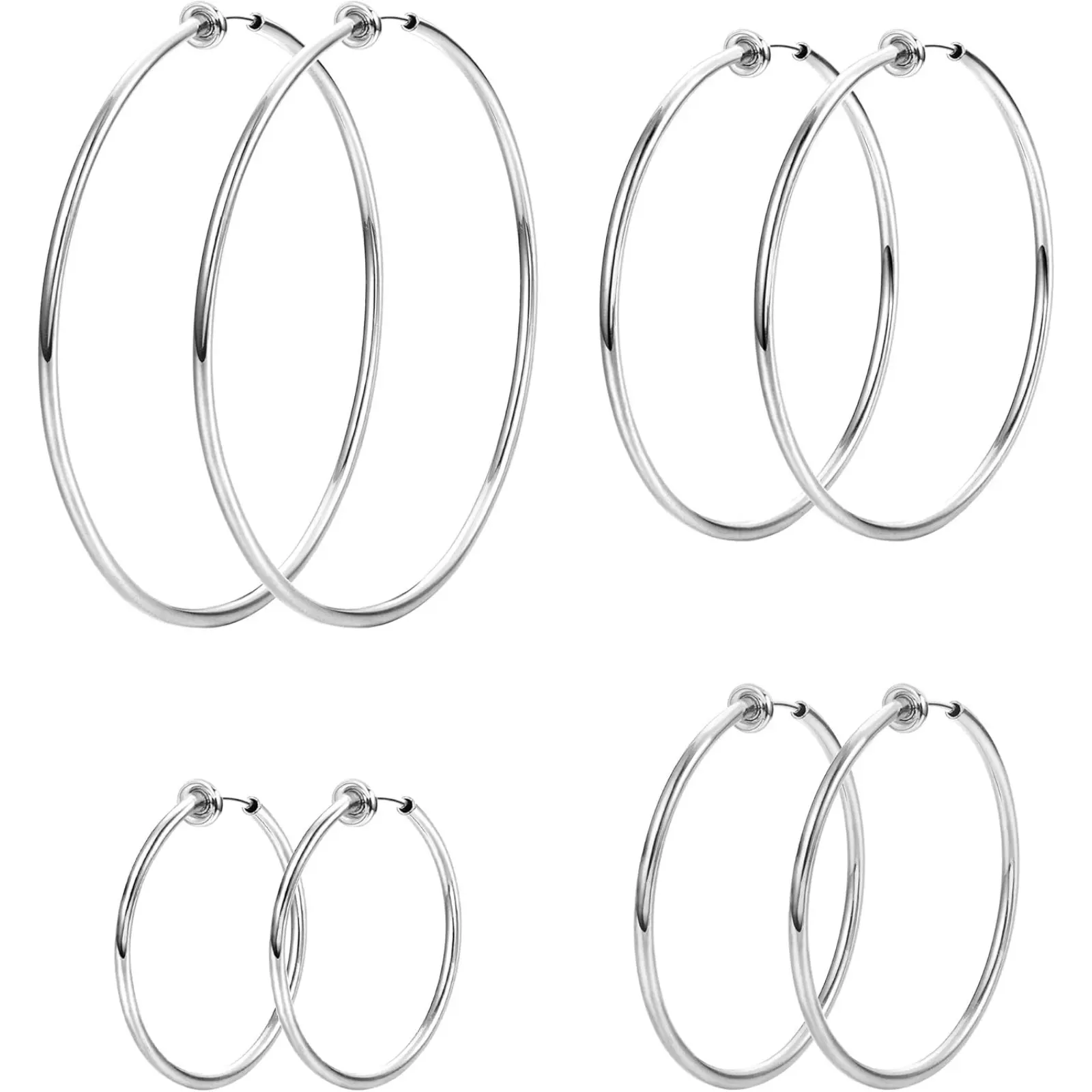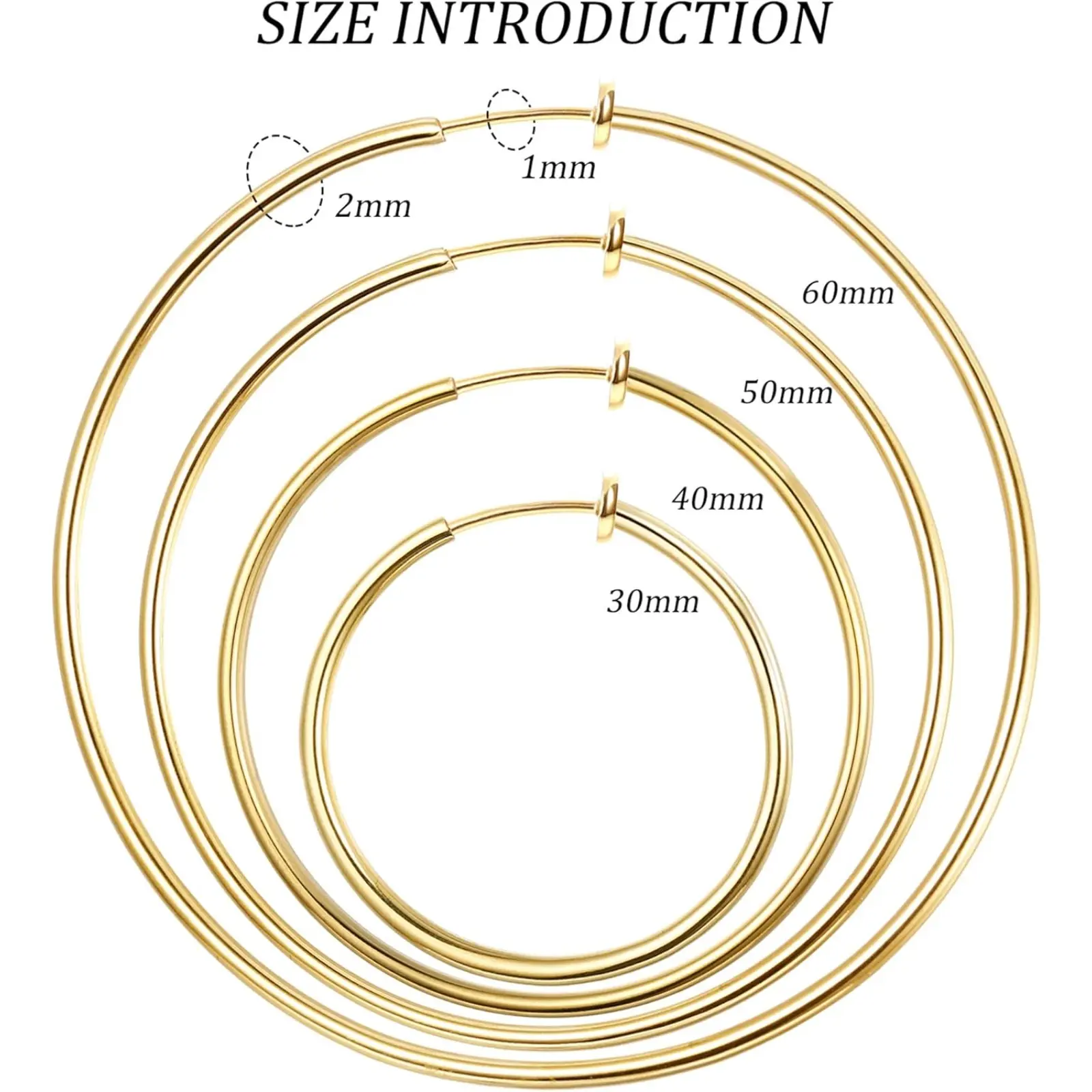 ·MULTIPLE SIZE: Clip On Hoop Earrings Have 4 different colors(Silver/Gold/Rose Gold/Black),Size Include Small Clip On Hoop Earrings30mm (1.2 inch),Medium Fake Hoop Earrings40mm (1.5 inch),Large Spring Hoop Earrings 50mm (1.9 inch),Extra Large non pierce earrings 60mm (2.3 inch),You Can Choose Different Size Every Day.