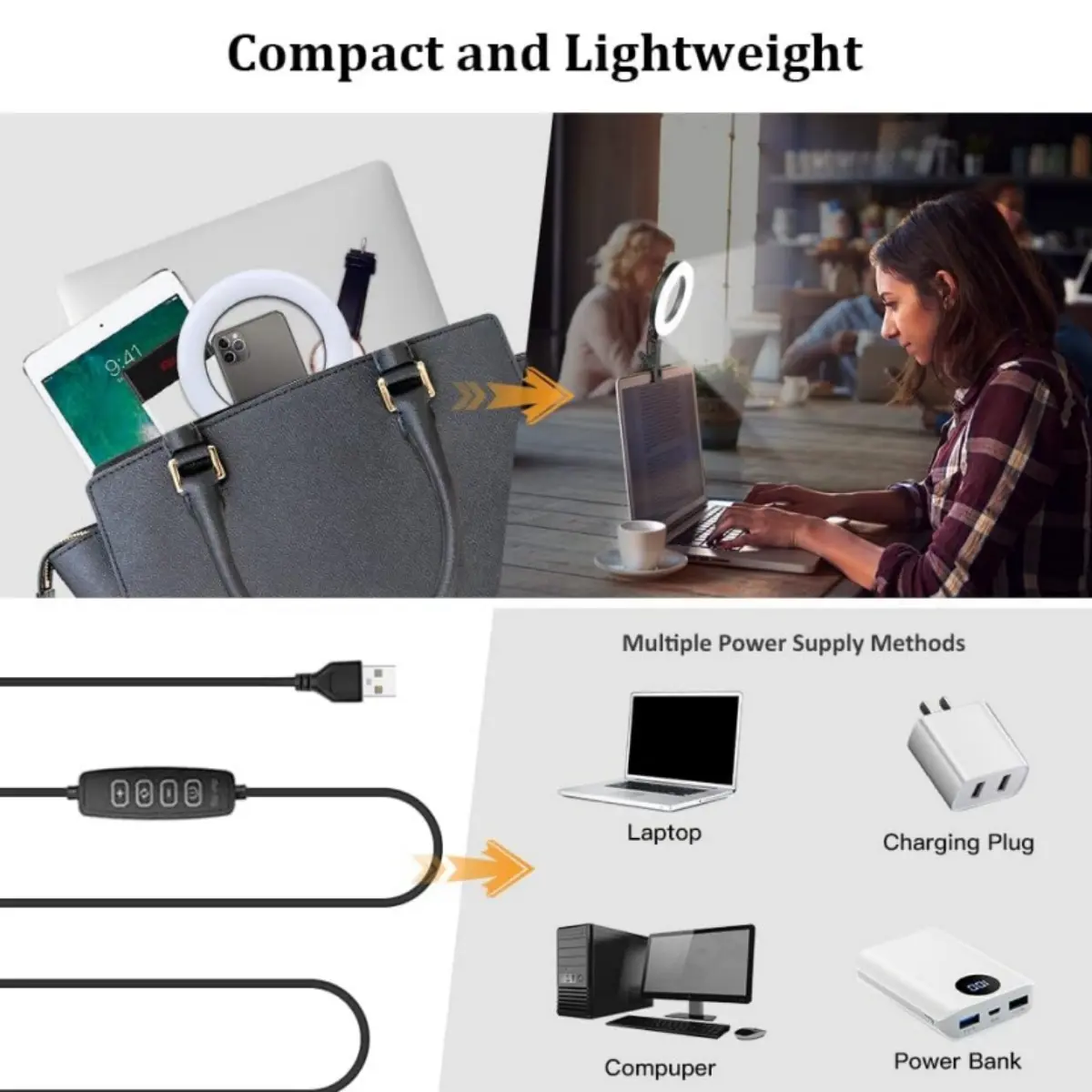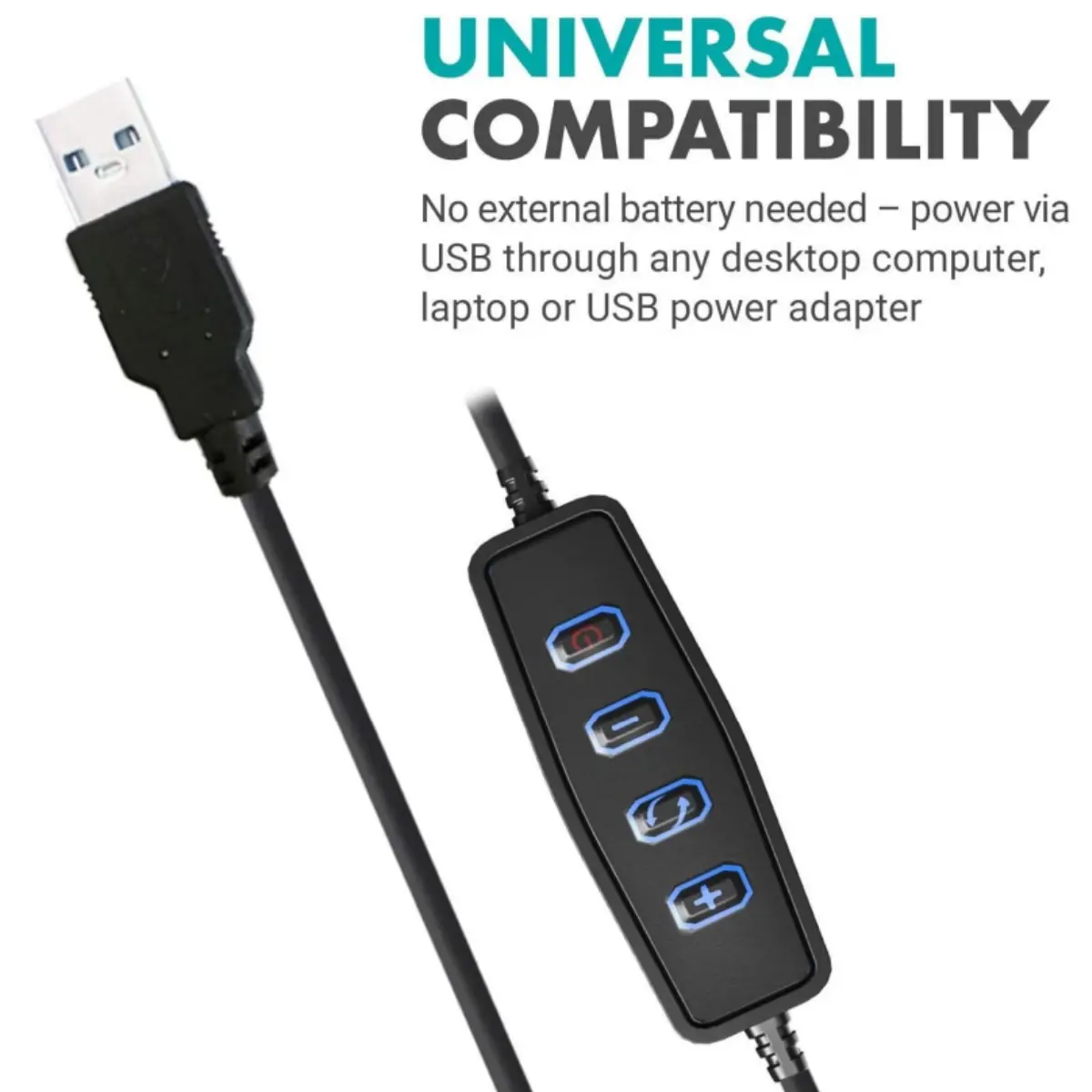 Powered via any USB device (laptop, power bank, charger) with a 2m cord for flexibility. Compact, lightweight, and easy to carry—ideal for travel or on-the-go use.