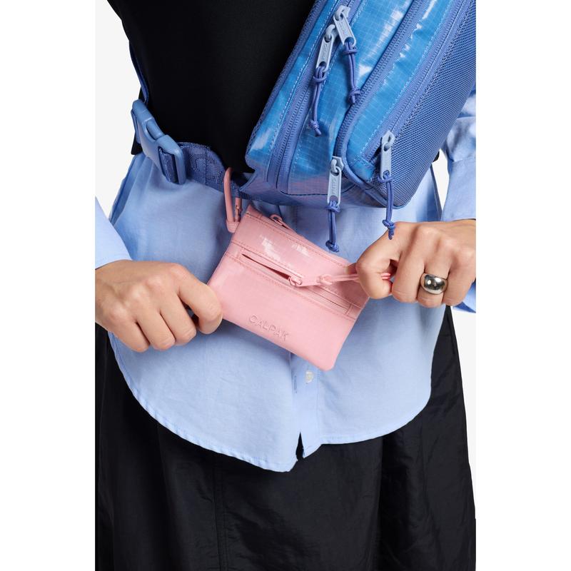 It’s super nice that clips on to stuff and zips, so super secure. Holds my basic cards and some cash in main pocket while the small holds my chapstick and lipgloss(necessities).