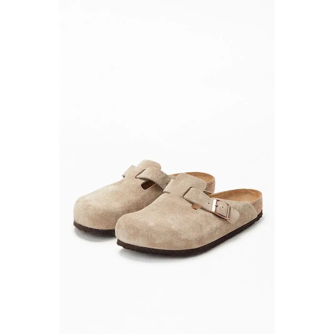 The Birkenstock Boston Soft Footbed Clog Taupe, crafted from classic suede, lend a fashion-forward edge to any style with their laid-back, every-season appeal. Featuring a cushioned BIRKENSTOCK soft footbed for custom support, these clogs ensure all-day comfort and support, while the flexible EVA sole and adjustable strap provide a perfect fit.