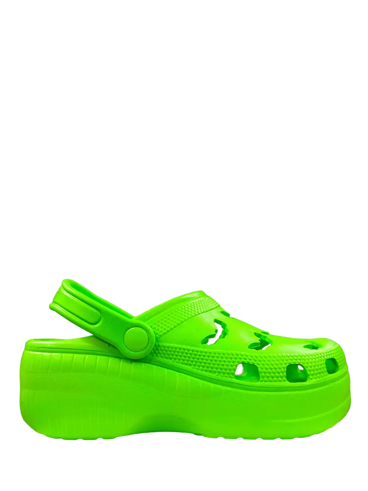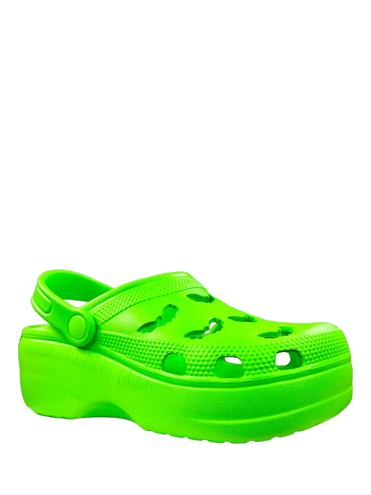 ·Neon Green Rubber Material: The vibrant neon green rubber clog adds a fun and eye-catching element to your outfit.