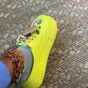 These shoes are so freaking cute. They are like cartoon character style. I have the regular ones and now I have the slip on slides and I love them. I wish I could wear them every day and everywhere, but I don’t wanna embarrass my kids. They are true to size high-quality thick soul comfortable.