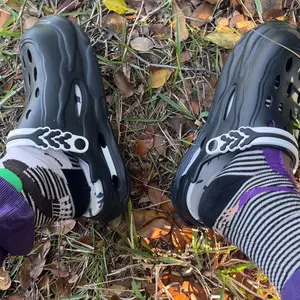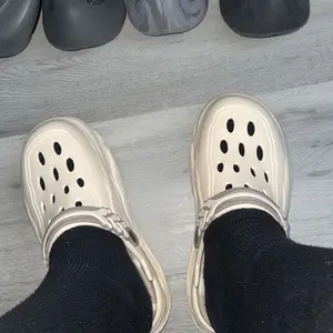 I’m a 9.5 in men’s and the largest size fits me perfectly. I’m pushing my foot in the photo. I think they have it listed as a 12? I’ve never had interaction with a crocodile but these things are pretty dang soft and comfy. They’re chunky. I like em a lot. I use em around the house.