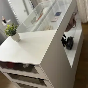 ·Sturdy and Lasting - Crafted from quality particle board, MDF and tempered glass, this island dresser is built to last. It with stable construction features good load-bearing capacity to store your cosmetics, bags and other belongings. And the drawers are equipped with smooth metal rails that are easy-glide.