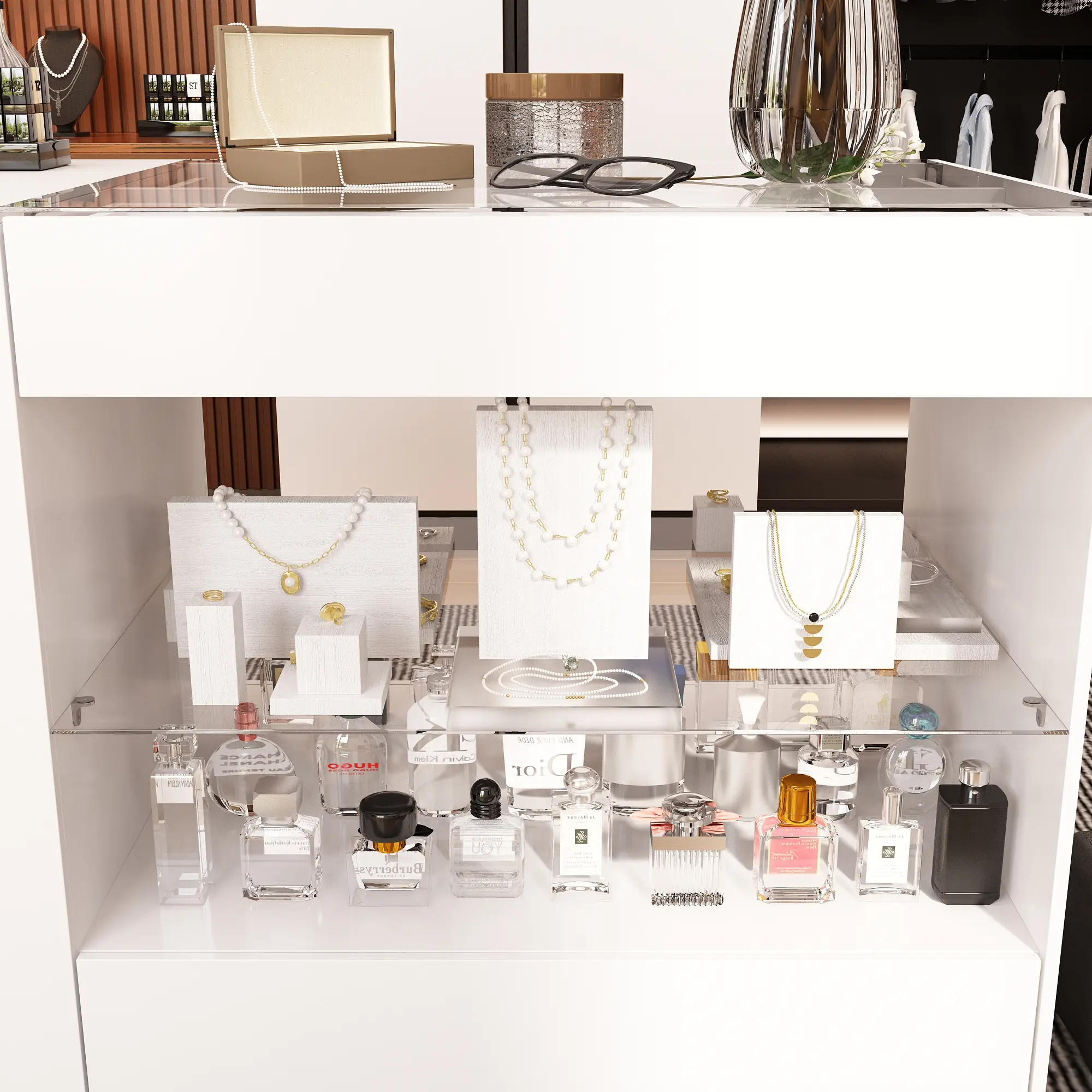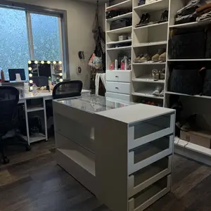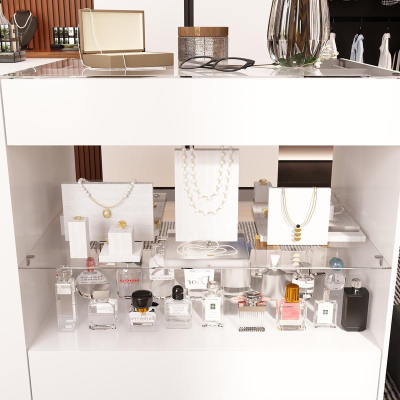 ·Abundant Storage - The closet island features 8 drawers, wide glass shelf and tabletop, offering abundant space to organize your belongings. The glass design is perfect for storing and displaying your cosmetics, jewelry and beautiful collections. Wide glass shelves provides extra room to store your slippers, towels, socks, pants, etc.